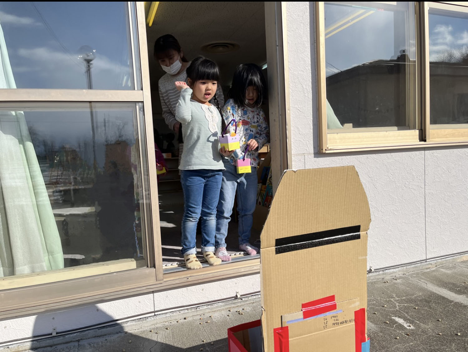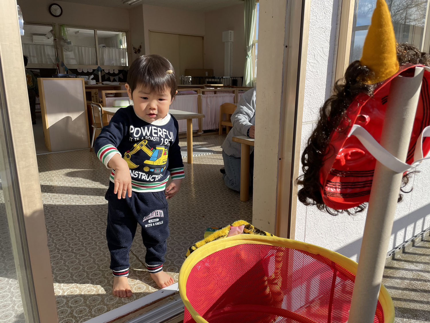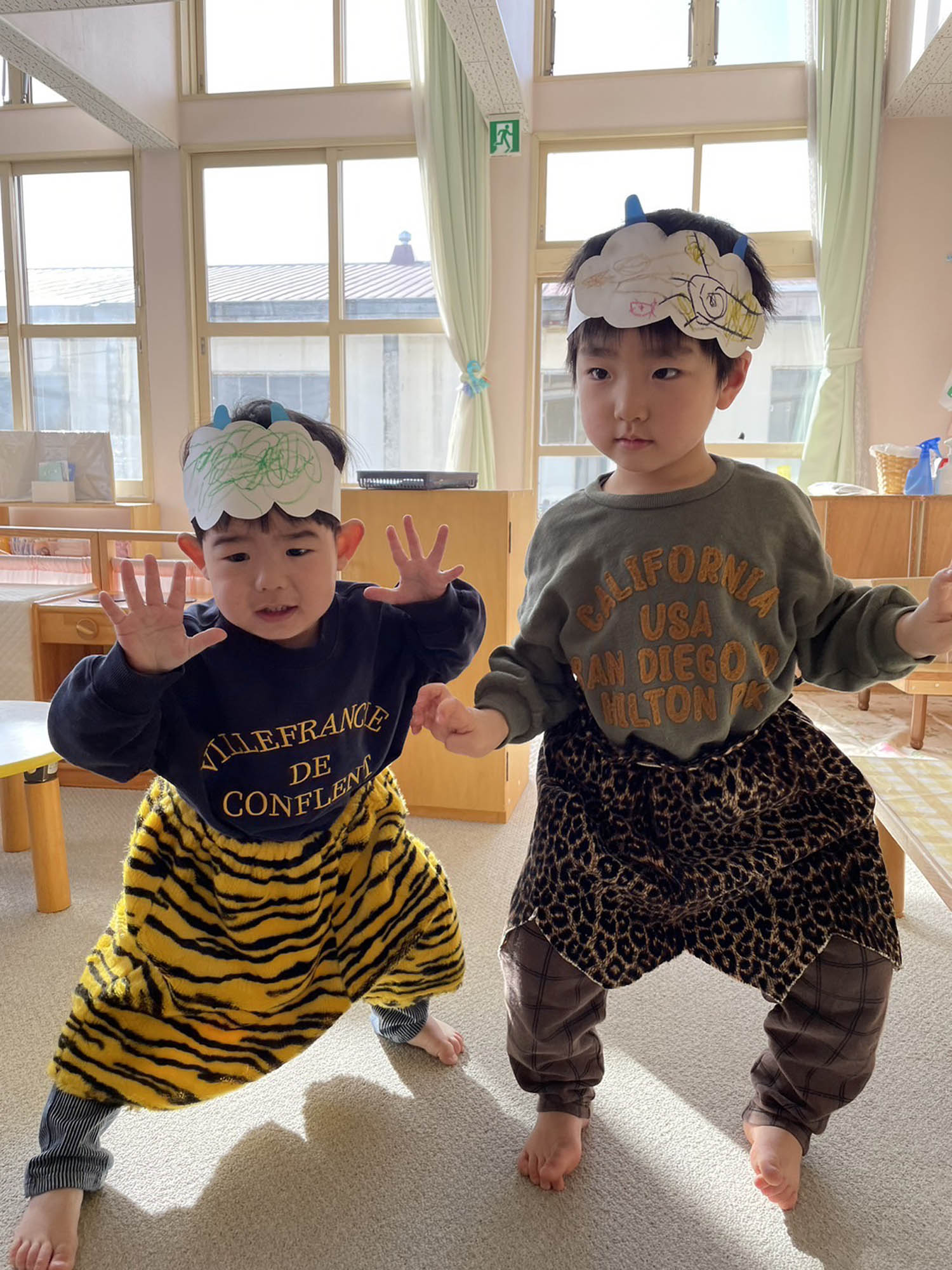 こんにちは、荻伏保育所です。 2月2日(金曜日)に「豆まきの会」がありました。 節分の由来を聞き、鬼退治ゲームをして盛り上がりました。 まめまきでは「おにはそと~」と大きな声で言いながら鬼に向かって豆を投げていましたよ。