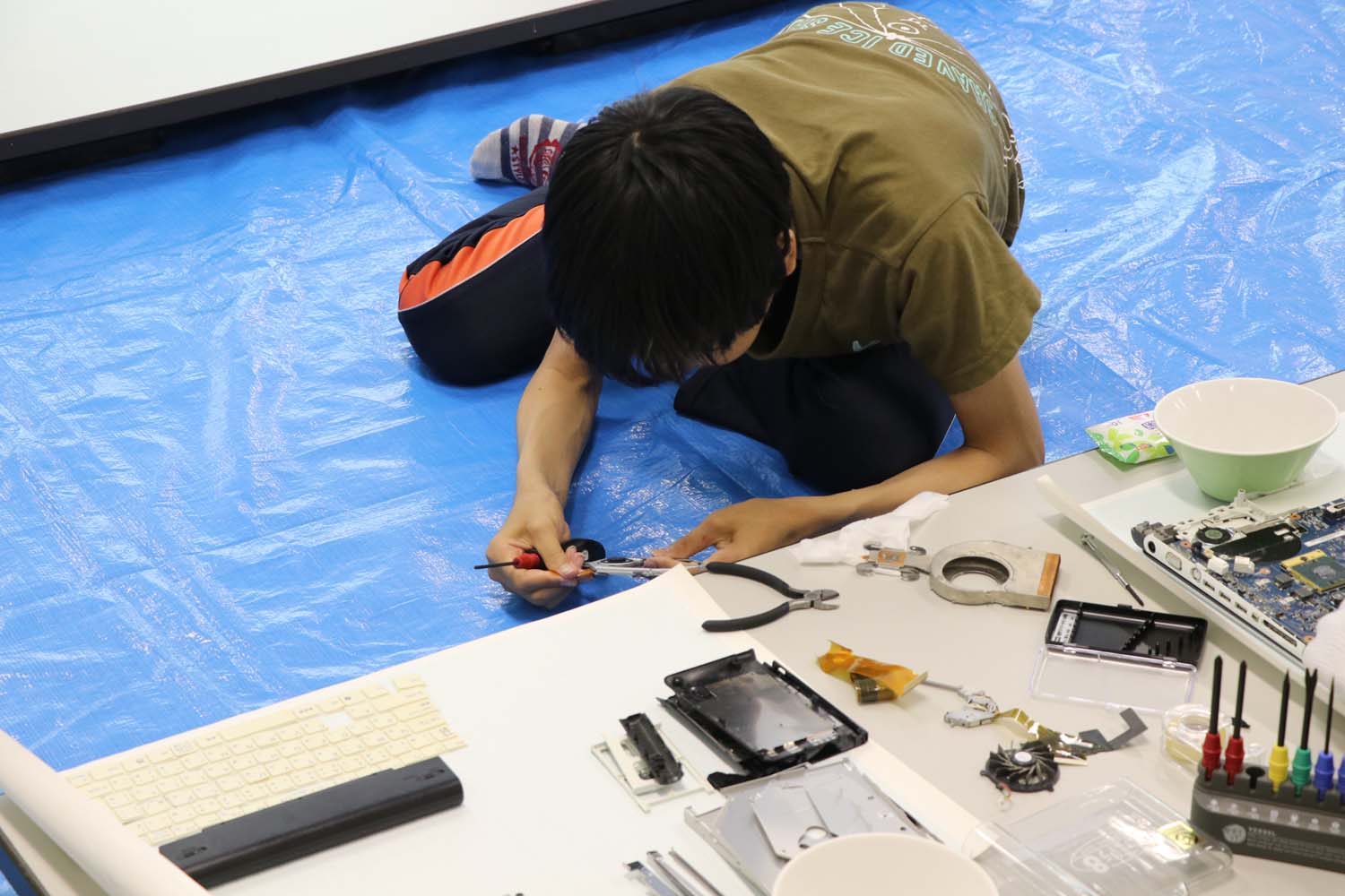こんにちは、広報担当です。 町立郷土博物館が7月15日に総合文化会館で、チルドレンミュージアム講座「家電を分解してみた」を開き、親子6組が参加しました。 この講座は、身近にある家電を分解し、使われている部品や、内部の仕組みを知ってもらうため行われました。 講座では、親子で炊飯器や掃除機、プリンターなどを分解。参加者らは細かい部品に苦戦しながらも、普段は見ることのない内部に興奮した様子で取り組んでいました。