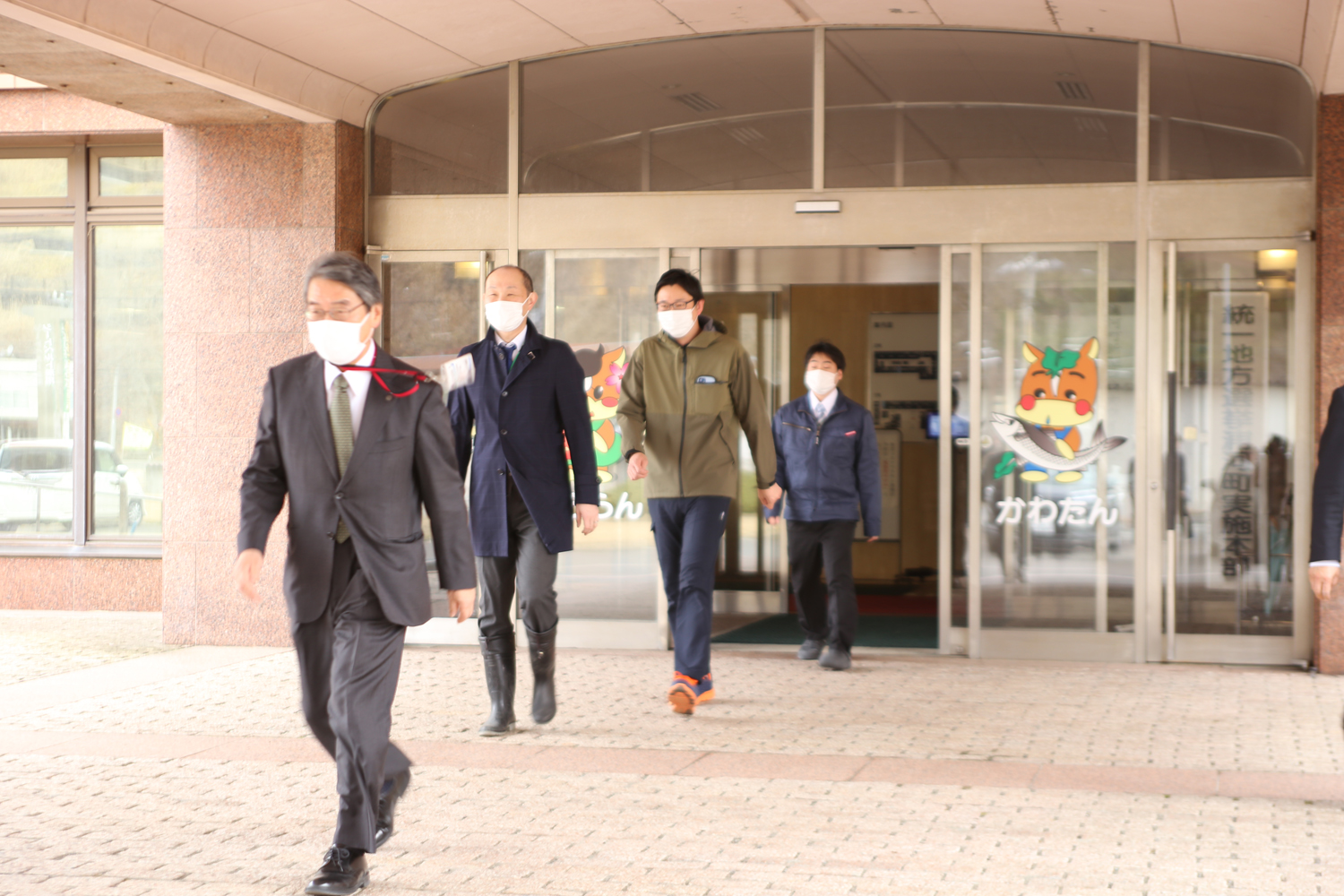 町職員が火災の際の避難経路の確認や、避難誘導の仕方などの確認のために、3月23日(木曜日)に役場で避難訓練が行われました。