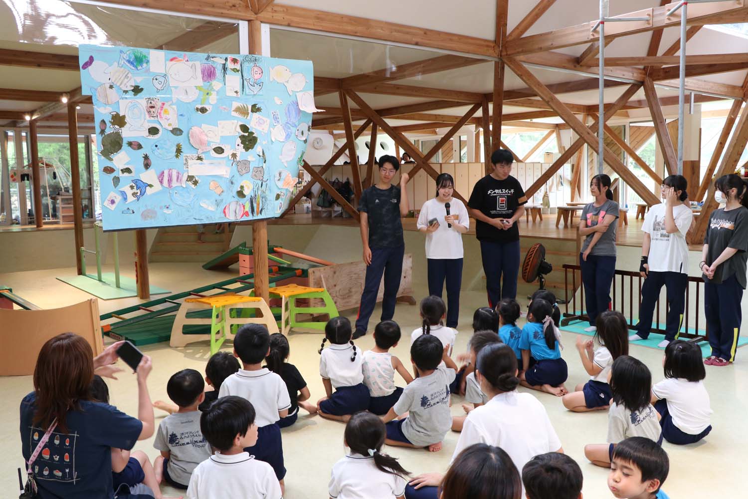 浦河高校の有志で構成される「浦高生ふるさと応援隊」主催の「みんなの森プロジェクト~水族館編~」が7月16日にフレンド森のようちえんで開かれ、年長26人が参加しました。