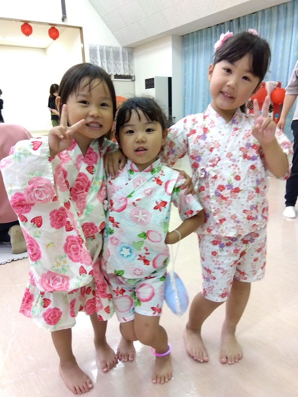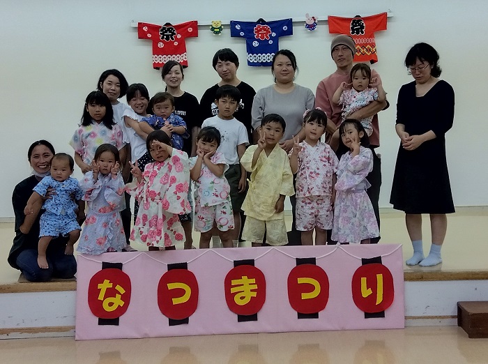 7月19日に東部保育所で英語遊びと夏祭りが開催されました。 英語遊びでは、協力隊の髙畠隊員が自然遊びの楽しさを教えたほか英語のダンスや手遊び、絵本の読み聞かせを行いました。 今回で髙畠隊員との活動は最後ということで、子どもたちは感謝の気持ちを伝え、ハイタッチやハグをしていました。 夏祭りでは、親子で子ども盆踊りやビンゴゲームを楽しみました。