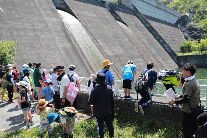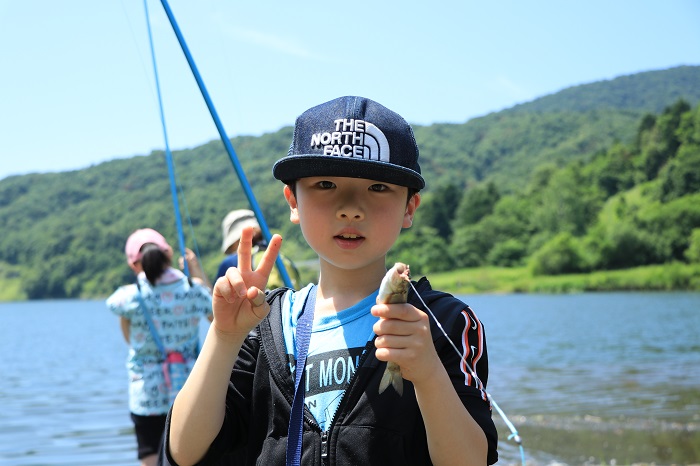 参加した河野理園さん(東部小2年)は「ダムの中はひんやりしていて驚いた。去年もイベントに参加していて、魚釣りでは1匹も釣れなかったけれど今年は2匹も釣れて嬉しかったです」と話しました。