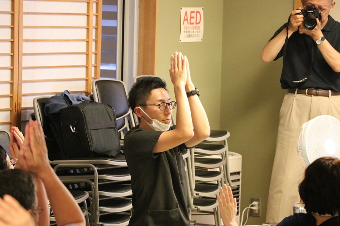 久野院長は「良い姿勢は本人の意識と筋力が大事、筋力が低下すると良い姿勢ができなくなり、身体に負担がかかる。テレビを見ながらでもいいのでストレッチなどを継続してほしい」と参加者へ呼びかけました。