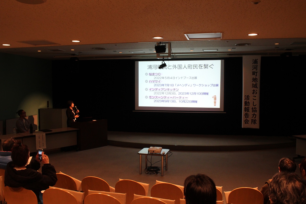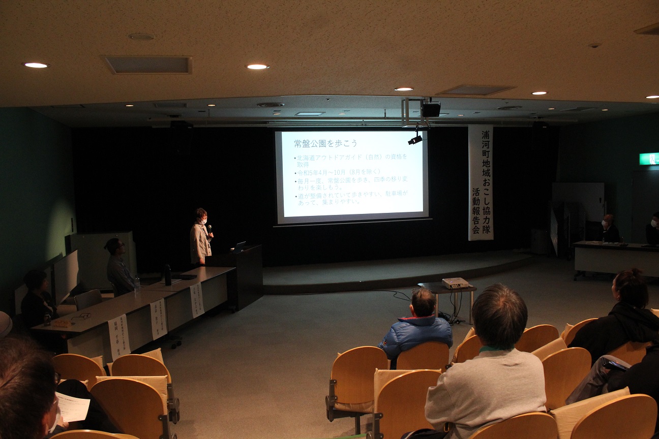 浦河町内で活躍する地域おこし協力隊3人の活動報告会が2月29日に総合文化会館で開かれ、25人が参加し各隊員のこれまでの活動と今後の展望について耳を傾けました。