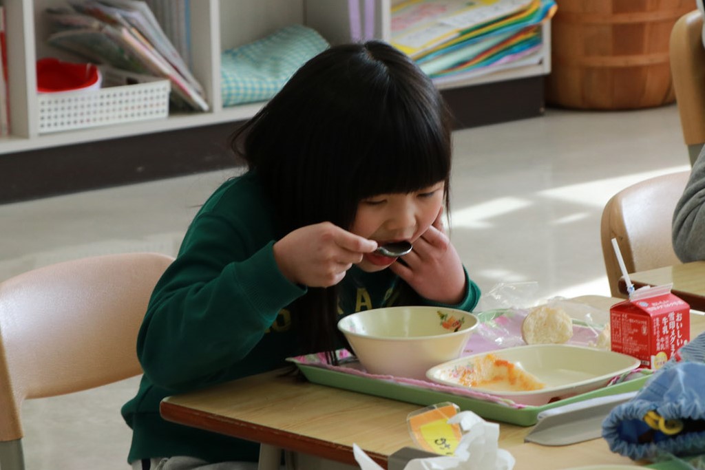 給食の後、同小1年生の野村彩心さんは「春レタスが甘くてふわふわしていて美味しかったです。毎日食べたい」と笑顔で話していました。