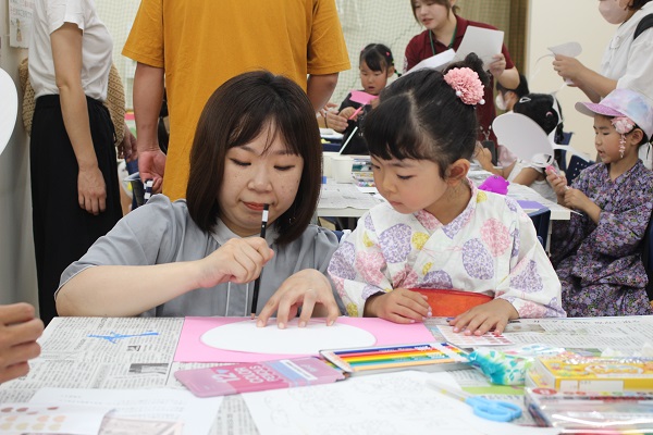大通商店街をスタンプラリーで巡る「第7回うらかわ七夕まつり」が、8月6日に大通商店街を中心に開かれ、通りは浴衣を身にまとった子どもたちや家族連れでにぎわいを見せました。 七夕まつりのために飾り付けられた受け付け会場のまちなか元気ステーションには「ヨーヨーすくい」や「おもちゃすくい」のほか、オリジナルうちわや七夕飾りを作る体験コーナーが設けられ、華やかな雰囲気に包まれていました。