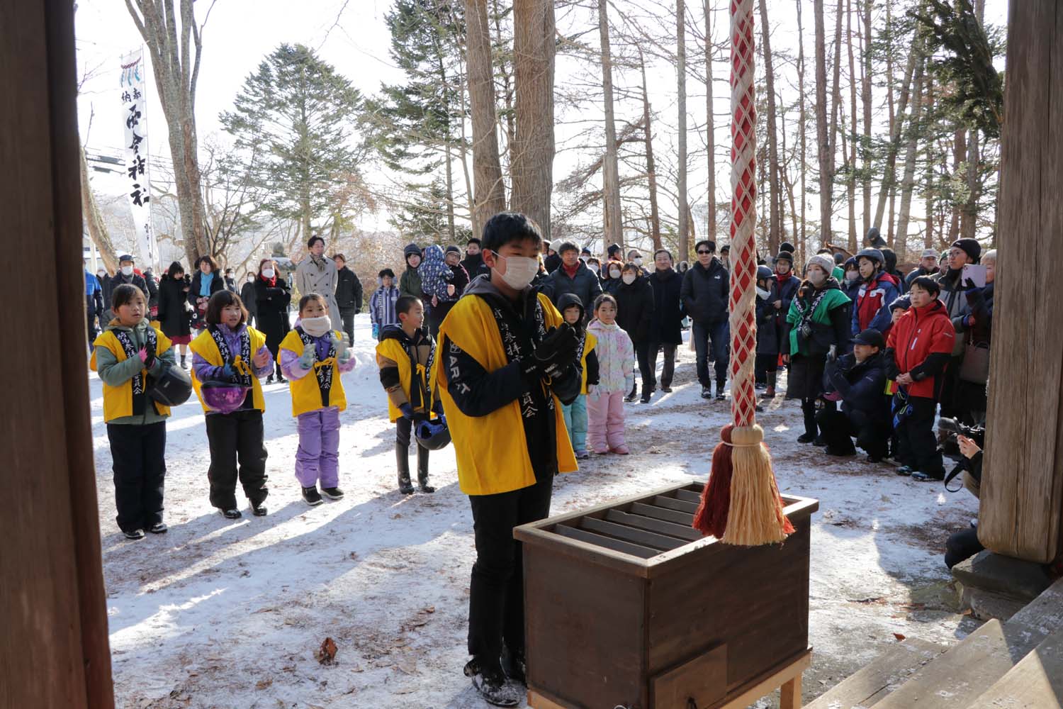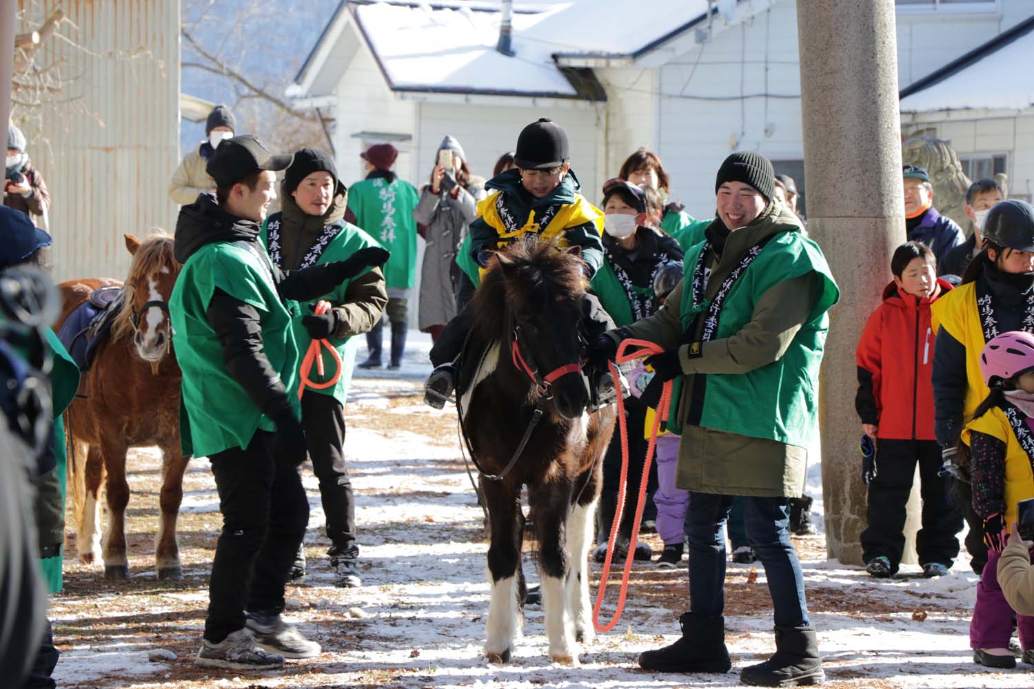 参拝した浦河ポニー乗馬スポーツ少年団の三嶋優斗さん(東部小6年)は「みんなも馬も1年間、元気で明るく過ごせるようにお祈りした。自分の1年の目標としては、夏に開催されるジョッキーベイビーズ地区大会で優勝し全国大会に出場できれば」と今年1年の抱負を語りました。