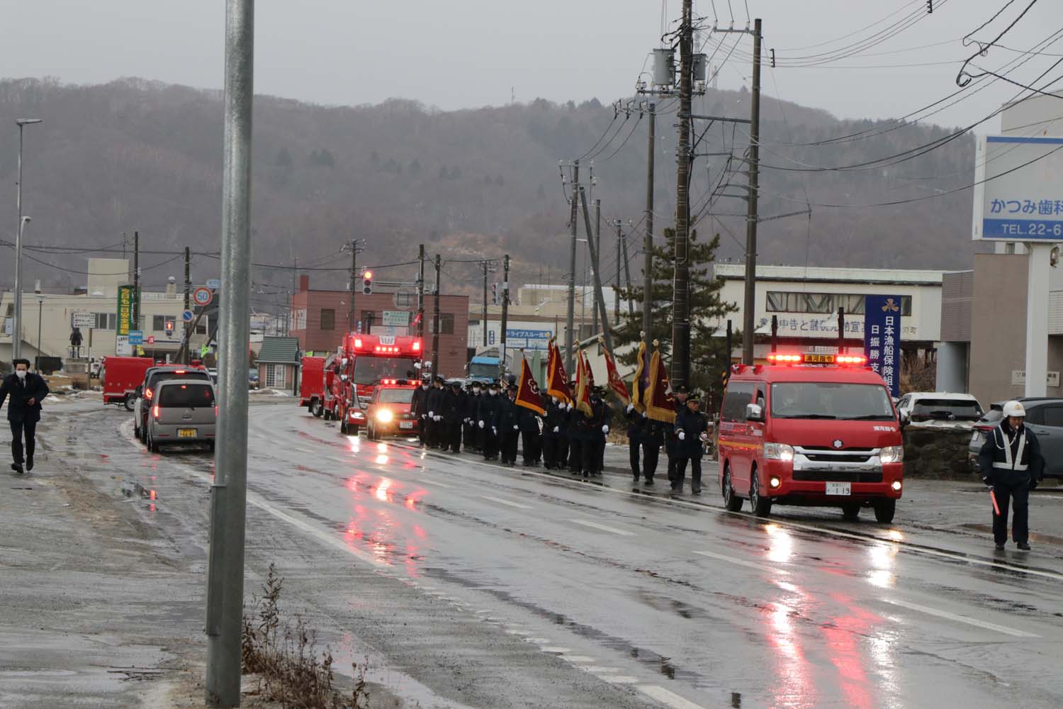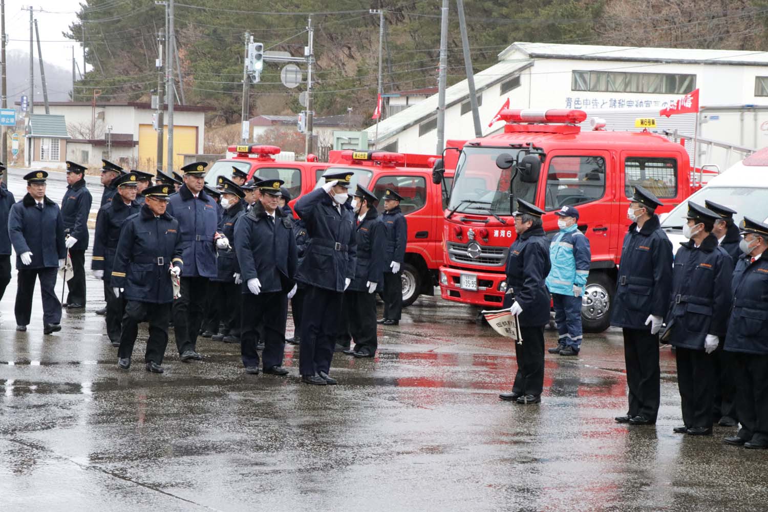 令和7年の「浦河町消防出初式」が1月6日に浦河消防署前で行われ、消防署員と消防団員ら80人と車両6台が出動しました。