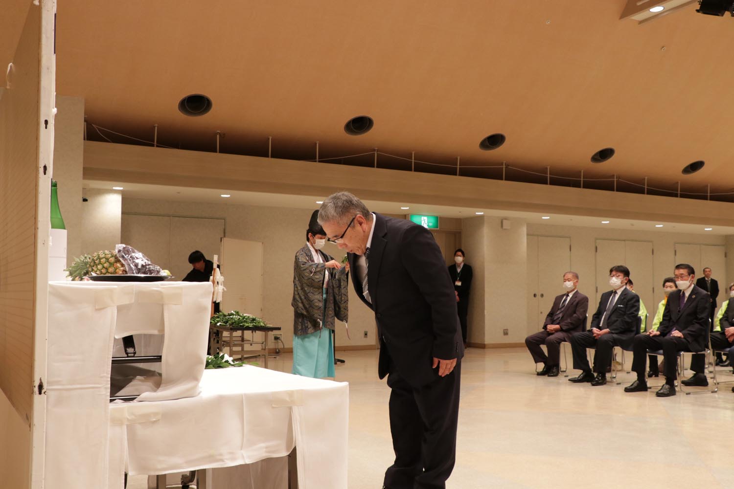この祈願祭は、1年間の地域安全を願うとともに、参加者の防犯意識を高めることを目的として開催。参加者は厳かな雰囲気の中、二礼二拍一礼で祈りを捧げ、玉串奉奠を行いました。