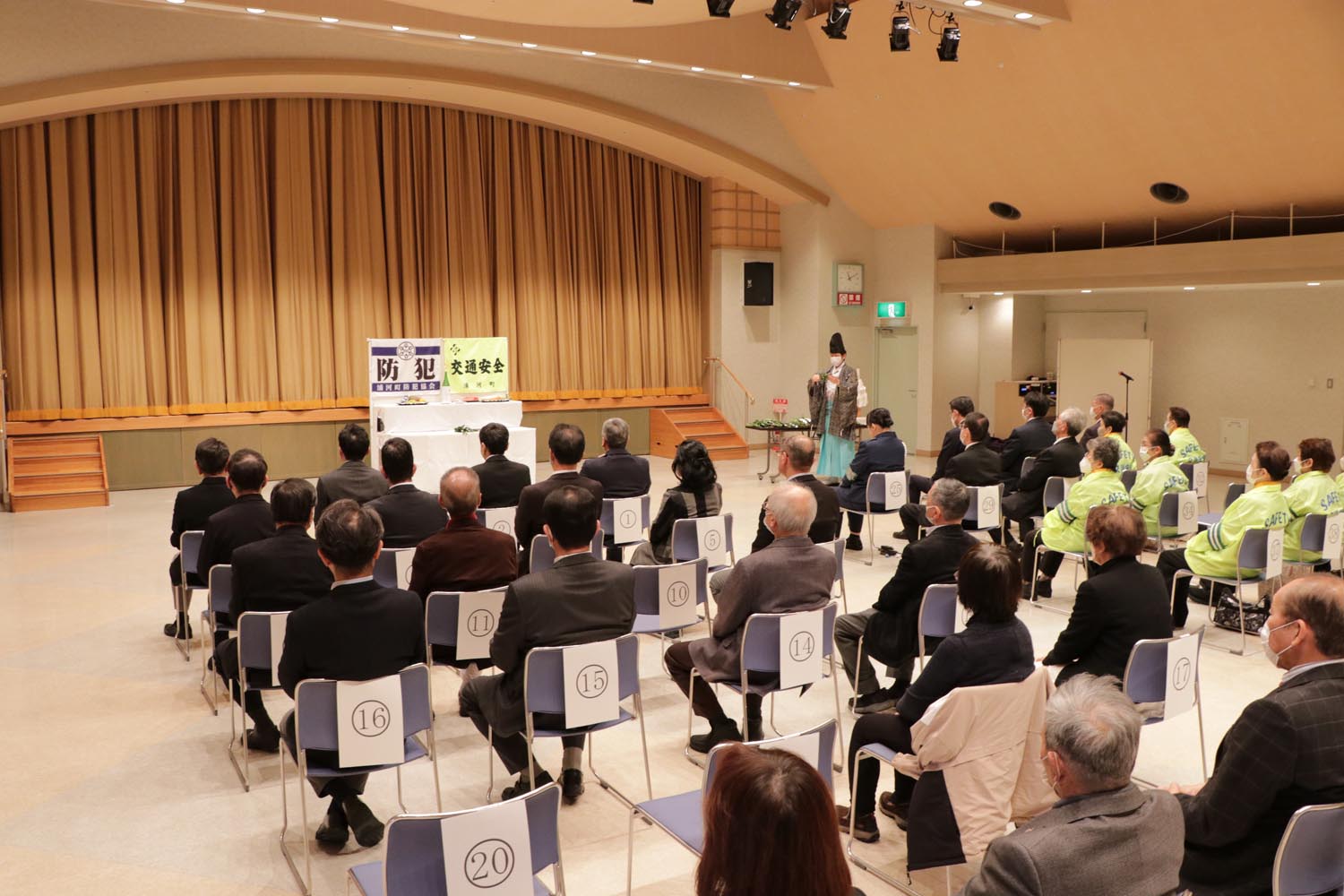 1月16日、浦河町防犯協会と浦河町交通安全指導員協議会が共催する「浦河町安全安心なまちづくり祈願祭」が、総合文化会館で開催され、関係機関から43人が参加し、地域の安全と安心を祈願しました。