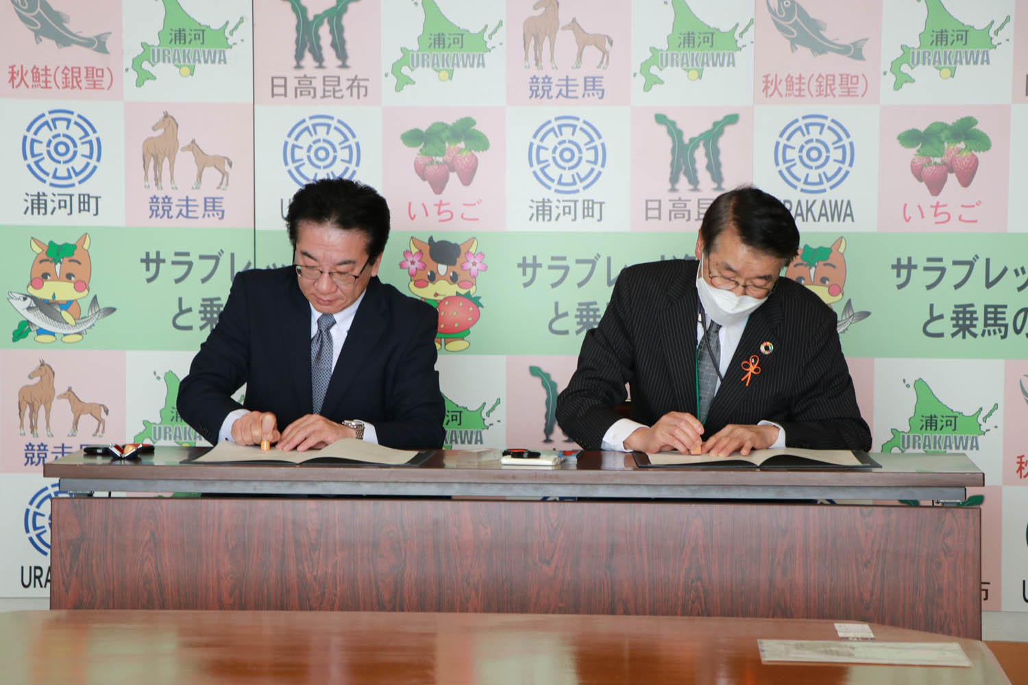 4月11日(木曜日)に役場で町と一般社団法人日本ムービングハウス協会(佐々木信博理事長)との災害時における応急仮設住宅の建設に関する協定および包括連携協定締結式が行われました。
