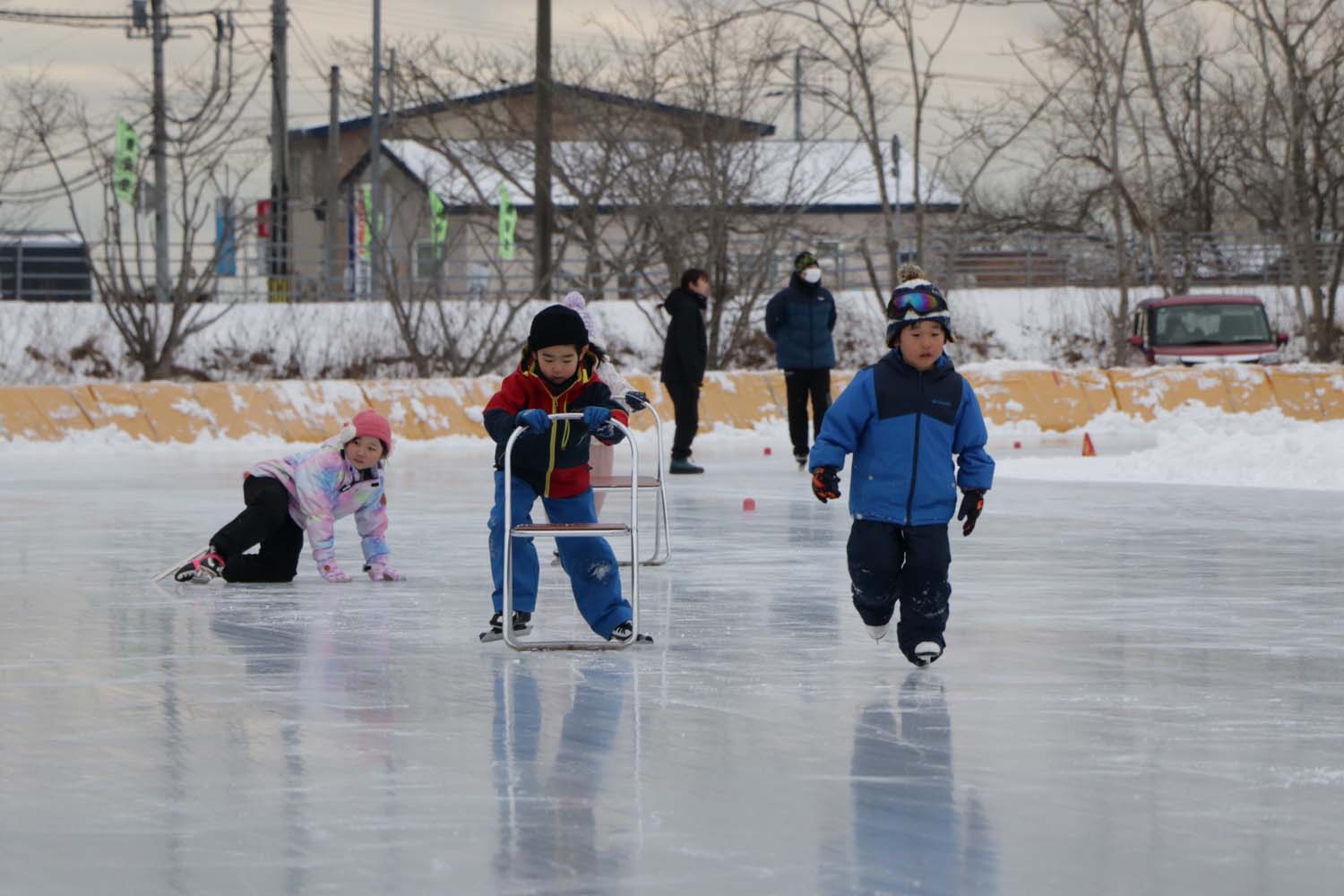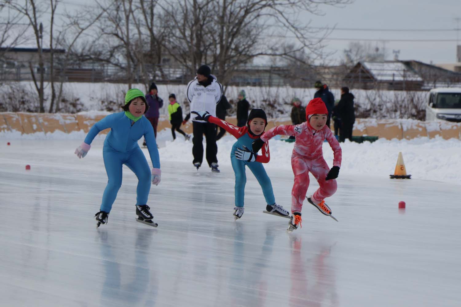 同日、4歳以上を対象としたスケート教室の第3回目も実施され、教室に参加した子どもたちは、練習の成果を発揮するため大会にも出場。慣れないリンクで転びながらも、一生懸命に滑走する姿が見られ、会場全体に温かい雰囲気が広がりました。