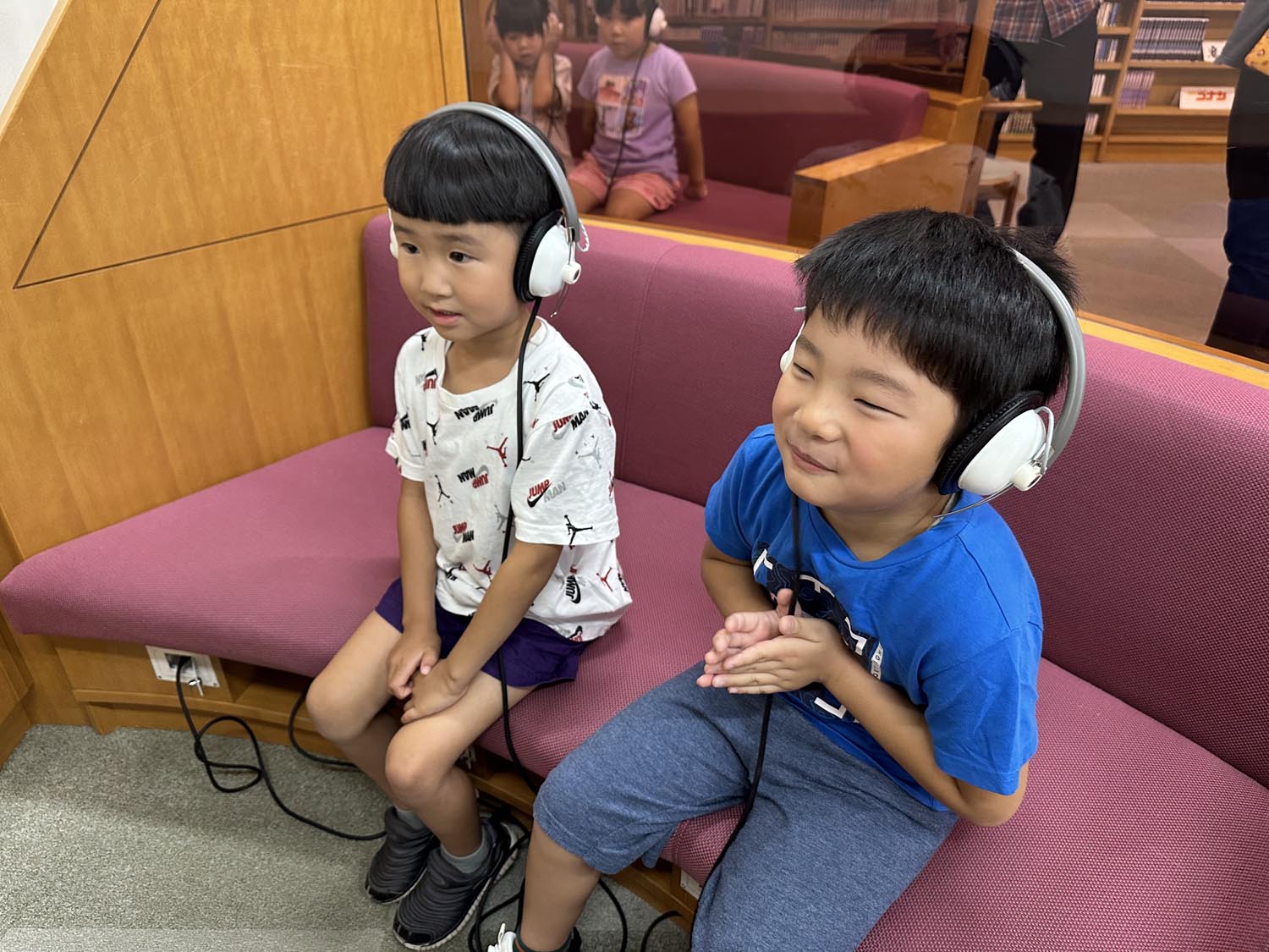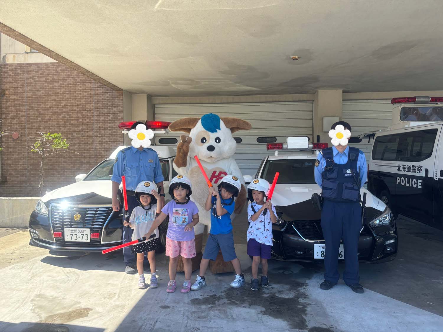 子どもたちは園のバスに乗って出発し、警察署や図書館、子育て支援交流施設のほか、カフェでランチを楽しみました。