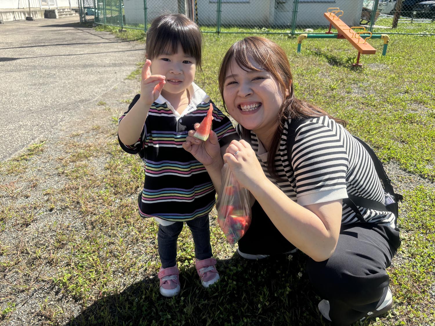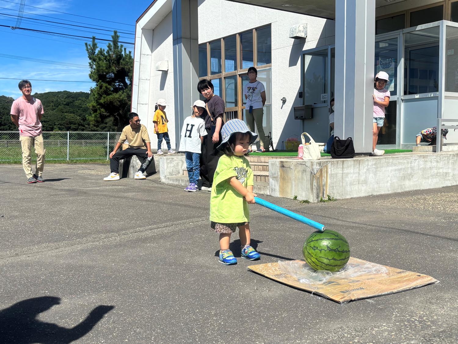 7日(土曜日)には親子レクを行い、親子で競う遊びやスイカ割りを楽しみ、割ったスイカを皆で食べ楽しいひとときを過ごしました