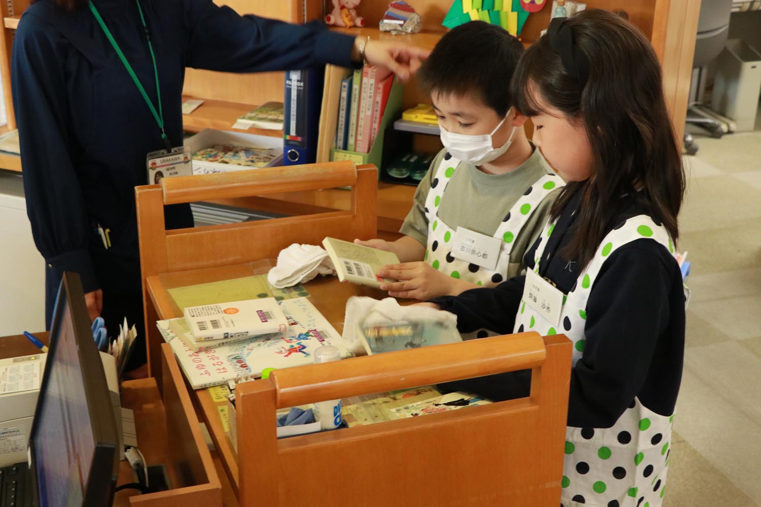 5月5日の子どもの日に合わせ、浦河町立図書館でこどもの読書週間事業「こども1日司書」が開かれ、小学生4人が参加し図書館司書の仕事を体験しました。