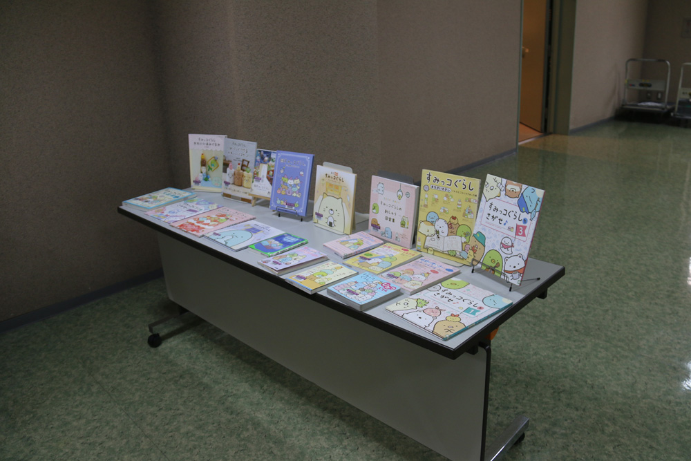 この上映会はこども読書の日とこども読書週間を記念して、こども達に読書の普及や図書館を利用してもらうため行われ、上映前には、すみっコぐらしシリーズの本のコーナーを設置し、こども達は興味深々。上映後には本を借りるこどもの姿もありました。
