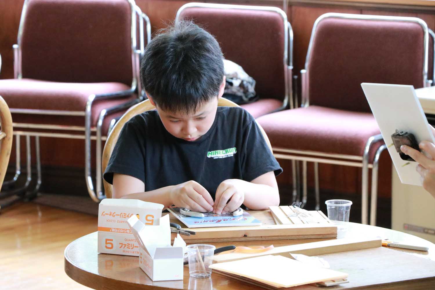 夫婦で参加した設楽学さん(東町ちのみ在住)は「この時計作りに今まで6回ほど参加しており、時計作りは毎年の楽しみで、今年も楽しみながら作ることが出来た。作った時計は家に飾るか、娘にプレゼントしたい」と笑顔を見せました。