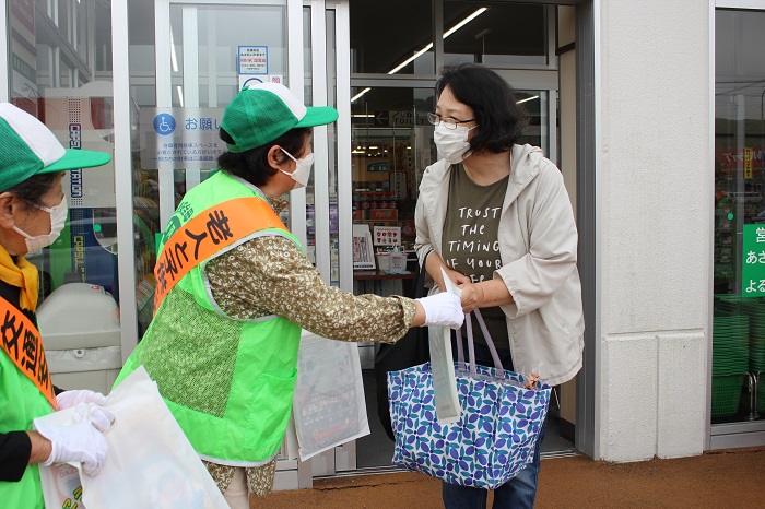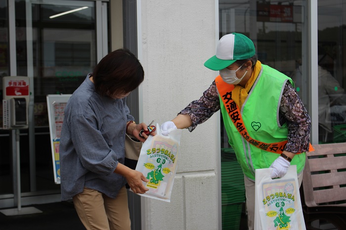 語呂合わせで「無事故の日」である6月25日、浦河町交通安全母の会(中宿郁代会長)や浦河警察署などが交通安全を呼びかける街頭啓発を、コープさっぽろパセオ堺町店にて行いました。