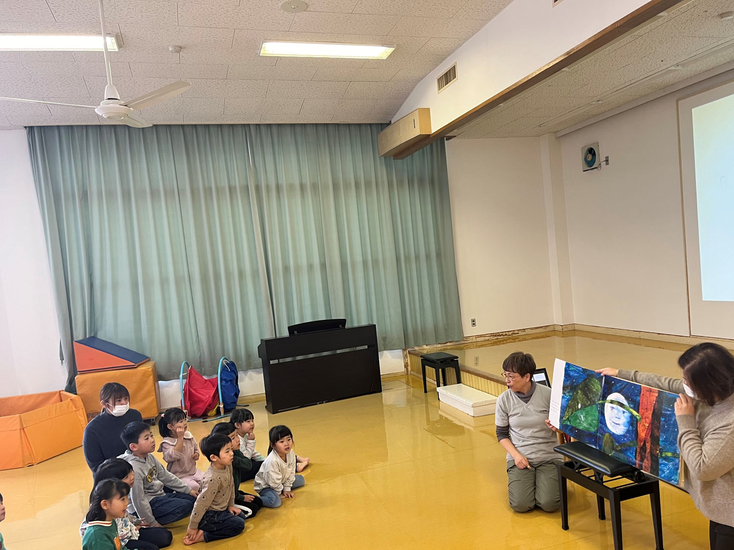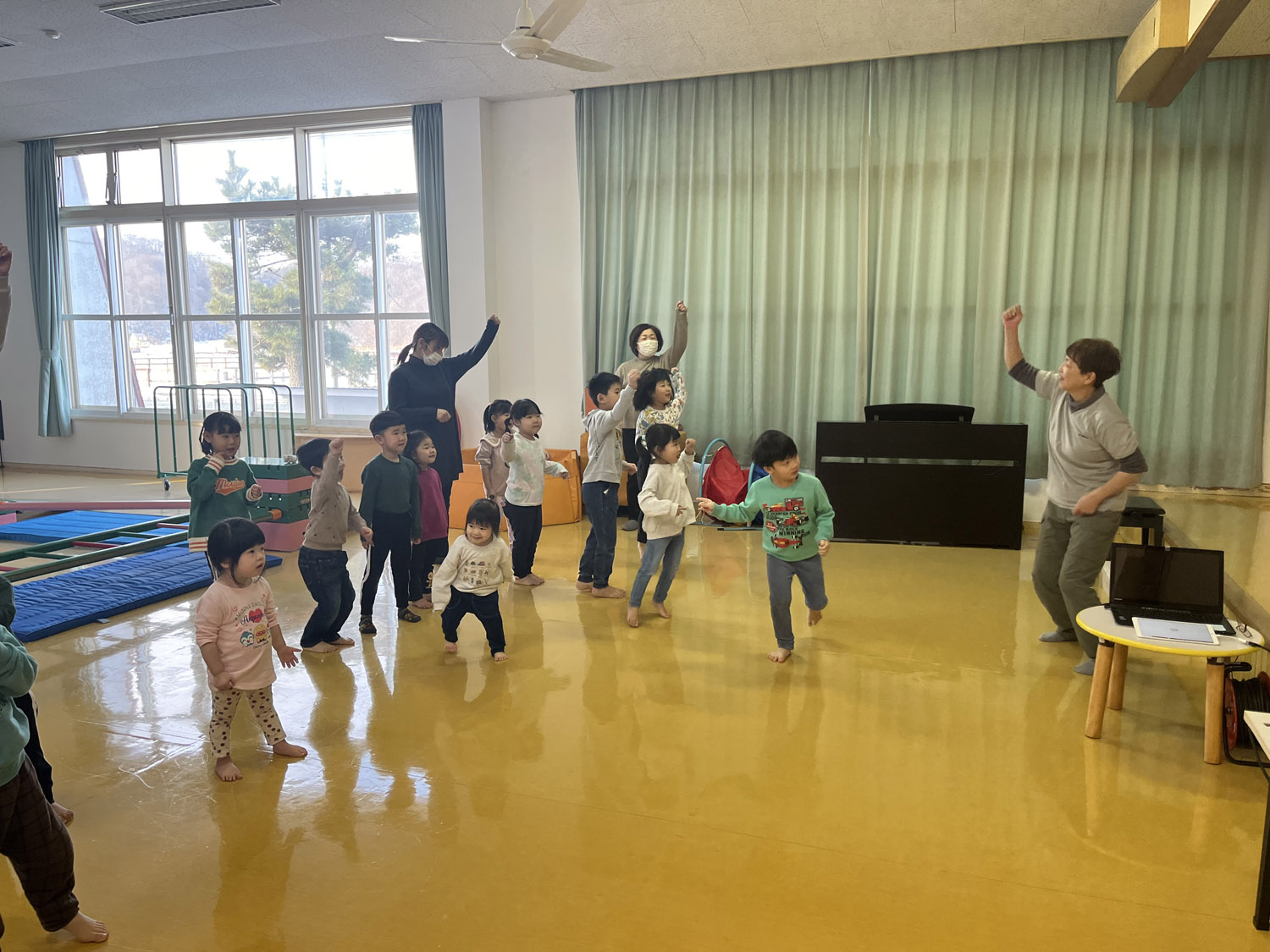 こんにちは、荻伏保育所です。 18日(木曜日)に地域おこし協力隊の髙畠さんによる、「英語を使った あそび」が行われました。8月から月1回行っている事もあり、教えてもらった単語を覚え、質問されると英語で答える姿も見られるようになってきました。 はらぺこあおむしの大型絵本を見ながら一緒に「キャタピラー」、「ハングリー」等言って楽しんでいます。