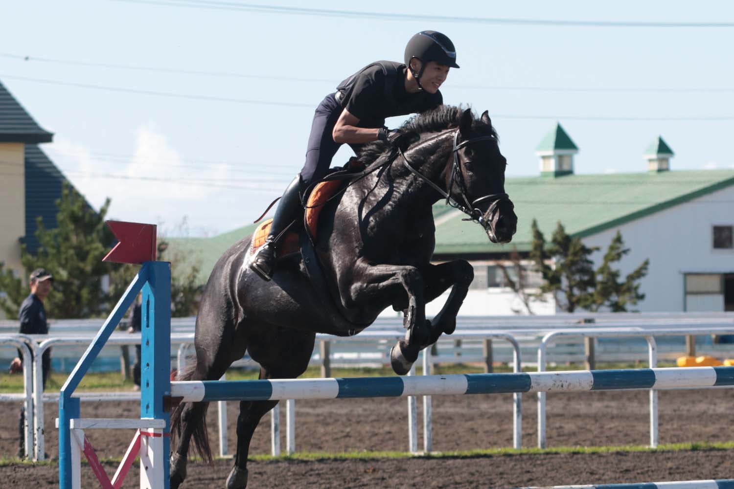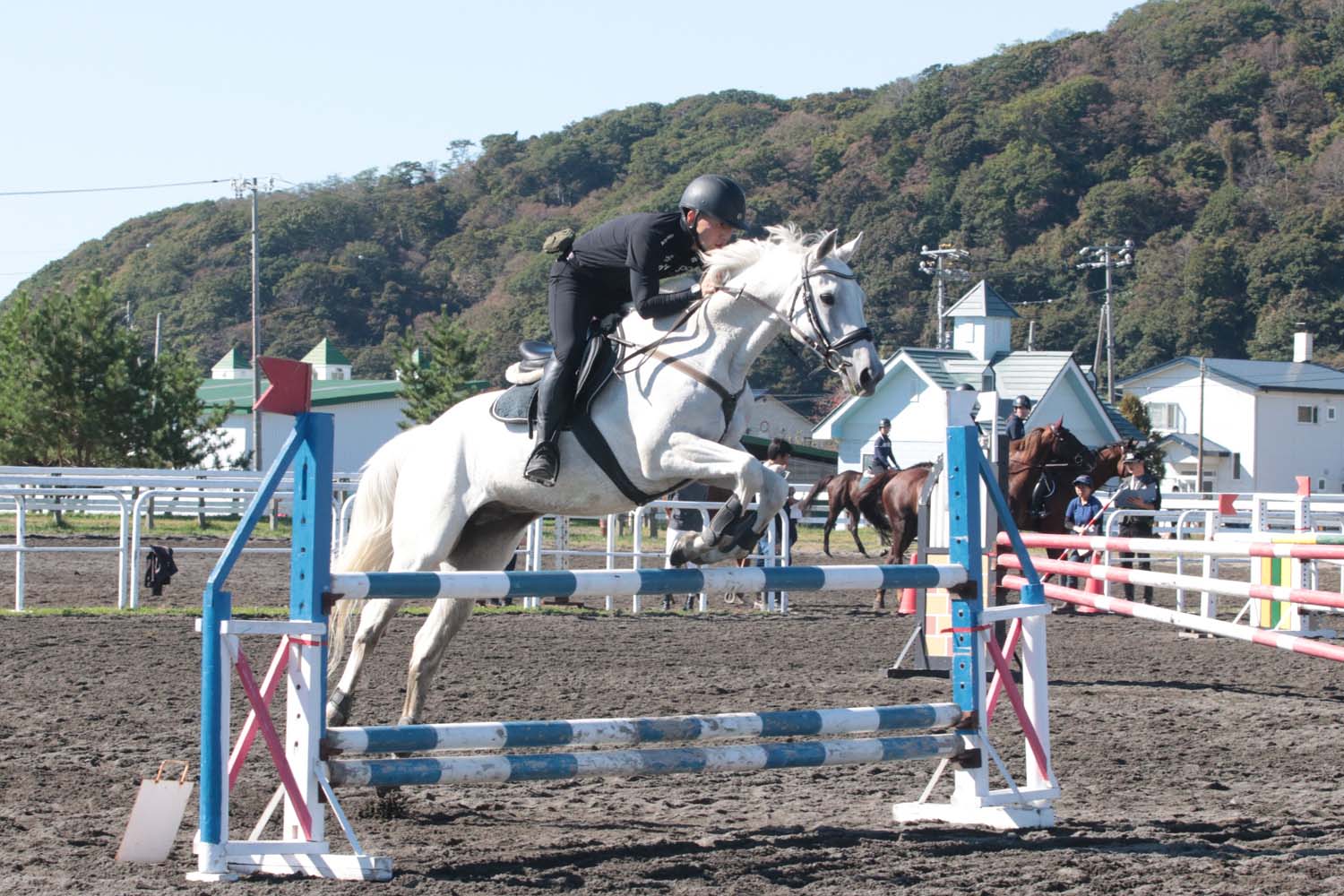 町民乗馬大会は乗馬を通して、町民同士が交流することを目的に20年以上前から開催され、ジムカーナ競技や障害飛越競技など初心者から上級者まで幅広く競技を楽しめるもので、この日は晴天となり絶好の乗馬日和となりました。