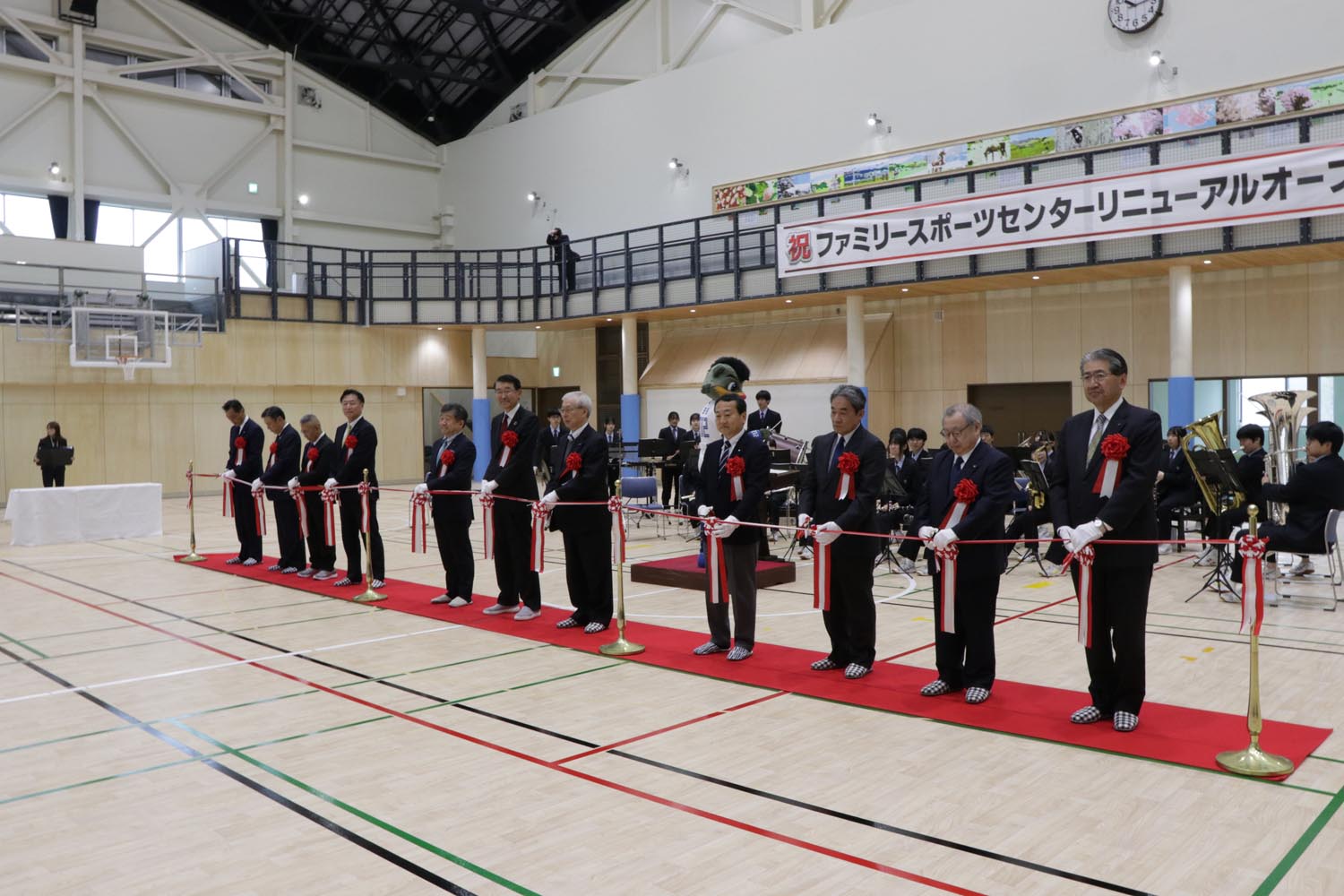 池田町長は「健康増進・防災機能強化・新たな町のシンボルをキーワードに魅力ある施設へと生まれ変わった。ゼロネクストワンアリーナとしてリニューアルオープンしたファミリースポーツセンターは地域の健康づくりや防災施設の拠点として皆様に愛される施設を目指し、関係者一同で努力していく」と話していました。