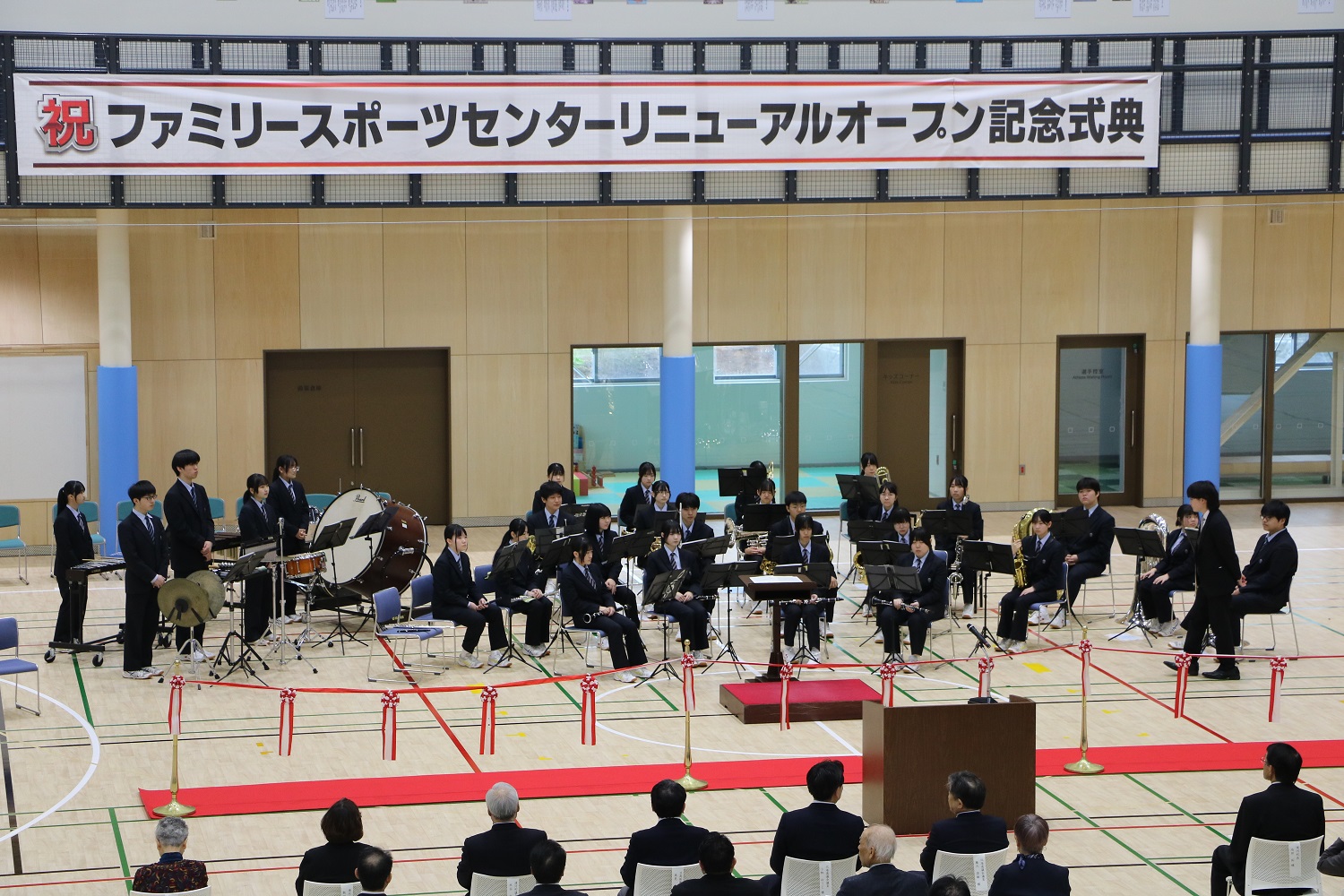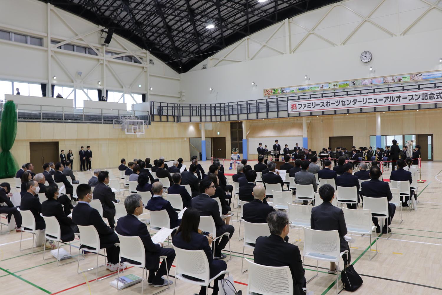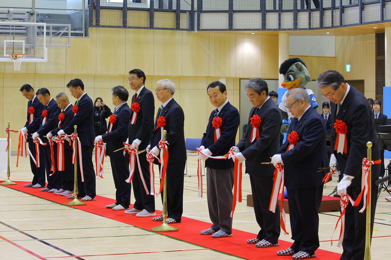 ファミリースポーツセンターのリニューアルオープン記念式典が5月10日に開かれ、関係者ら61人が出席し、新たな施設の稼働を祝いました。