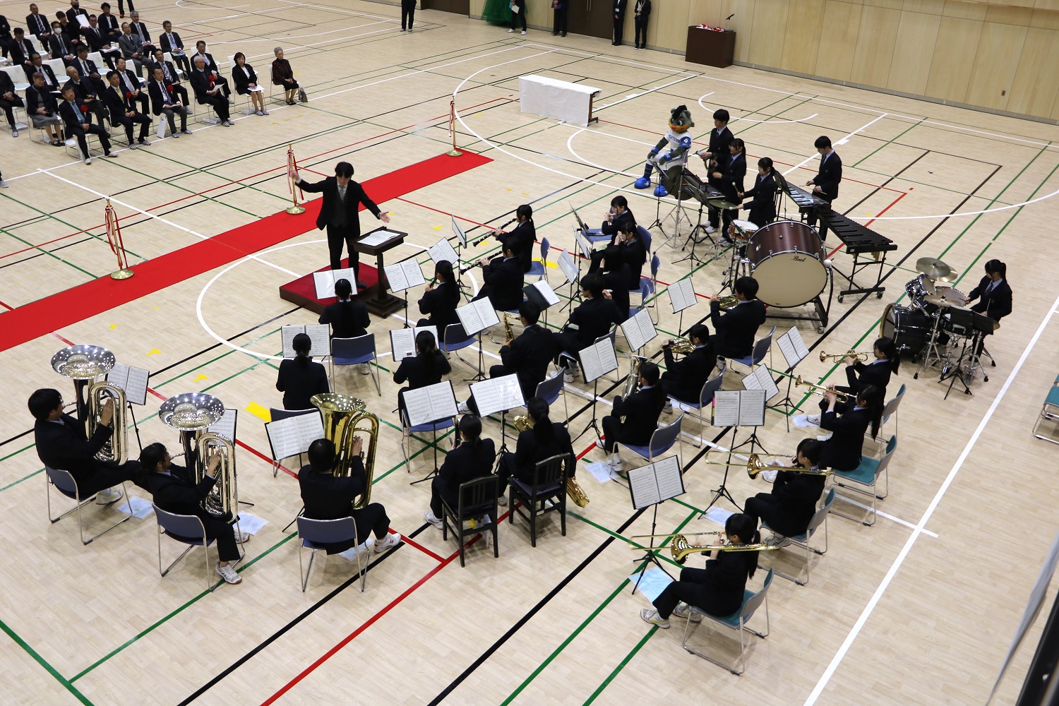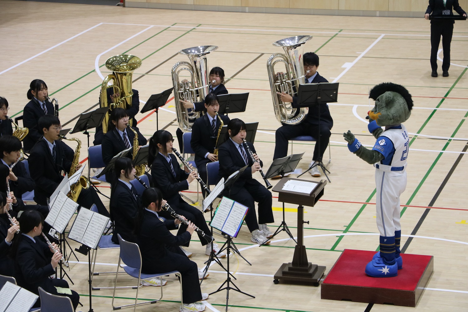 記念式典は、浦河高校吹奏楽部の記念演奏やテープカット、施設の内覧が行われたほか、令和2年度から2年間浦河町特別アドバイザーを務めた北海道日本ハムファイターズのマスコットキャラクターB☆Bがお祝いに駆け付けました。
