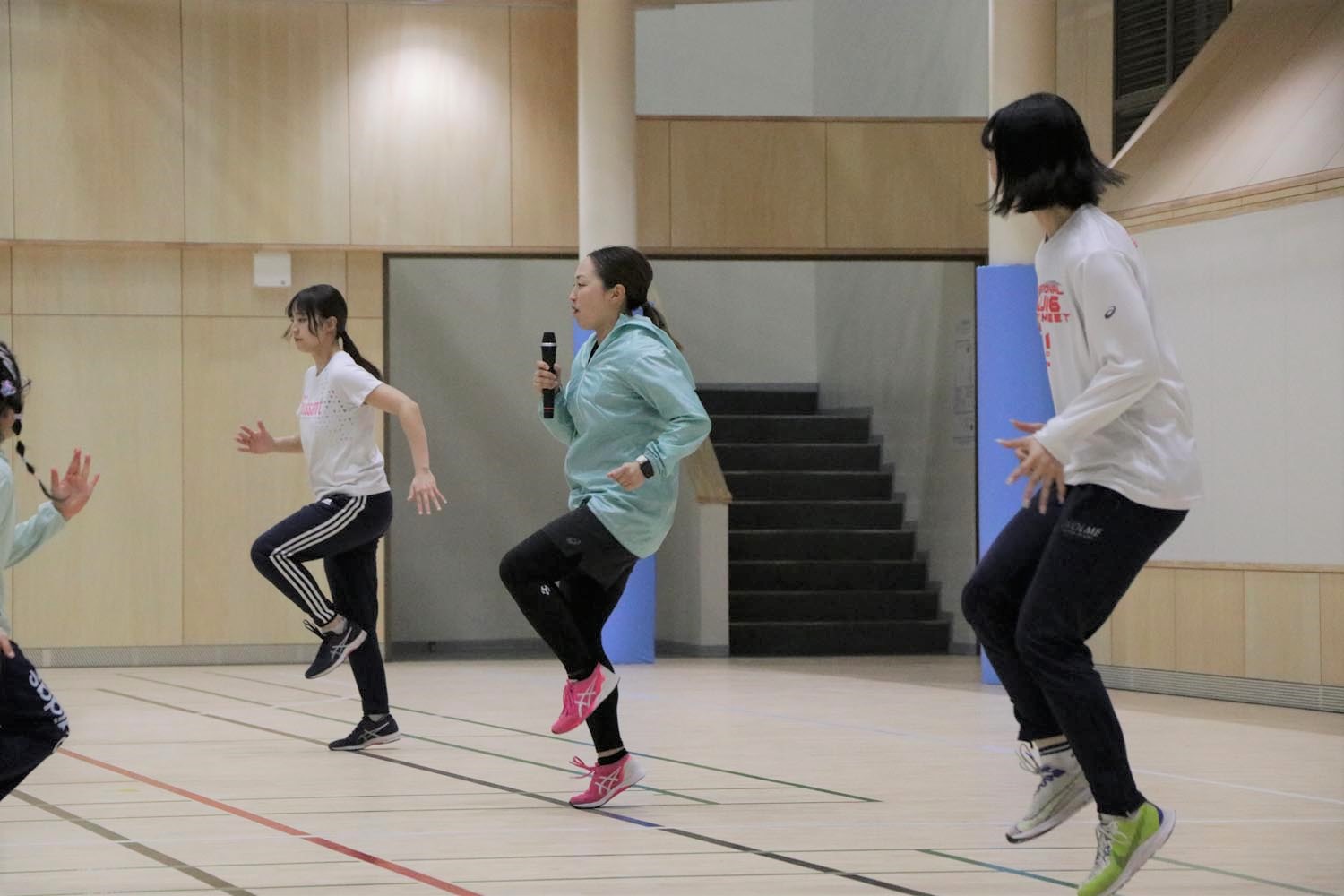 5月10日にゼロネクストワンアリーナでリニューアルオープンに合わせ走り方教室が開かれ、町内の小・中学生約100人が参加しました。