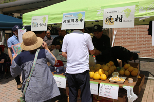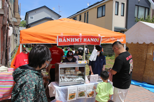 町内外から様々な飲食店が出店したほか、手作り雑貨の販売、木工体験やボールすくいなどの体験ブース、ダンスサークルのステージ発表やバンド演奏などが行われました。このほか、浦河高校や浦河赤十字看護学校、浦河警察署、地域おこし協力隊らの体験ブースや友好交流都市の天草市河浦地区で活動する「河浦同志會」の皆さんによる特産品などの販売もあり、来場者は夏らしいお祭りを楽しんでいました。