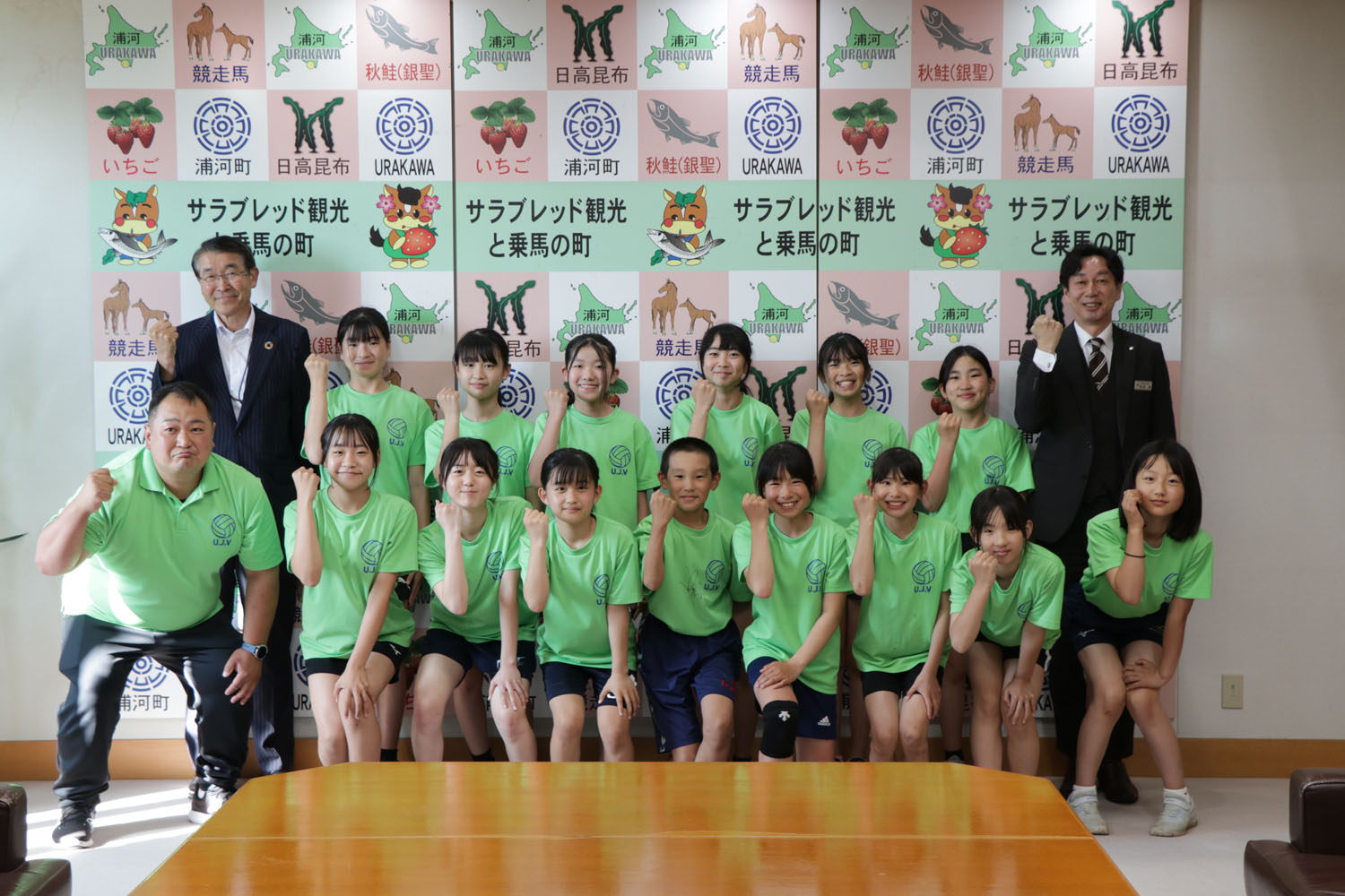 7月5日に札幌市で行われる、令和7年度全日本小学生バレーボール大会南北海道大会に浦河バレーボール少年団(4~6年生14人)が出場を決め、6月18日に池田町長と和田教育長へ表敬訪問を行いました。