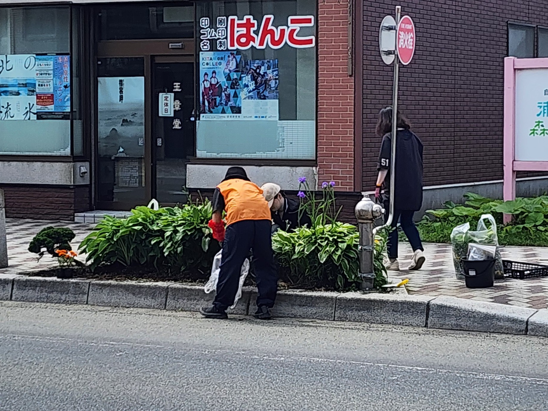 6月28日に花によるまちづくり活動をしている町の花愛好家団体、花・華倶楽部(小林美代子会長)の潮騒ロードと称した花植え活動が大通地区で行われました。