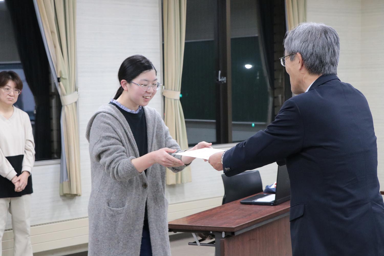 講座の終了後には閉講式が開かれ、同講座の入門編から基礎編までの3年間を学んだ3人に修了証書が駒澤保健福祉課長より手渡されました。