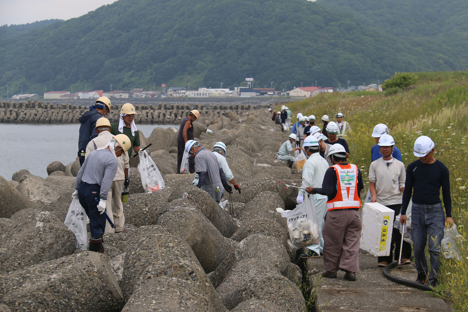 こんにちは、広報担当です。 浦河建設協会(手塚純一会長)主催の浦河港周辺のボランティア清掃活動「さわやか環境を守り育むサポート」が7月25日(火曜日)に行われました。 今年で18回目となる今回の開会式で町長は「長い間、環境整備活動をしていただきありがとうございます。皆さんの協力のもと港を綺麗にできれば」と挨拶。会員らは落ちているごみだけではなく、テトラポットの中なども綺麗に清掃していました。