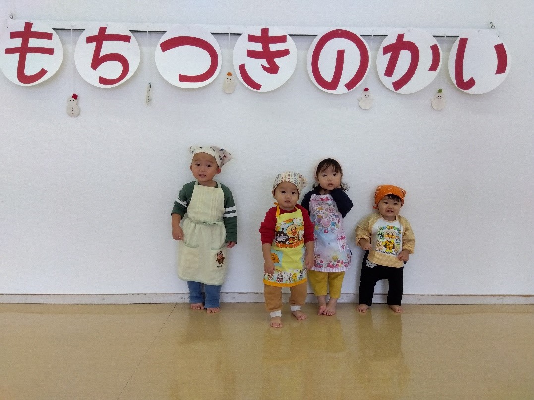 12月13日に保育所で「もちつきの会」を開き、園児と保育士が餅つきを楽しみました。