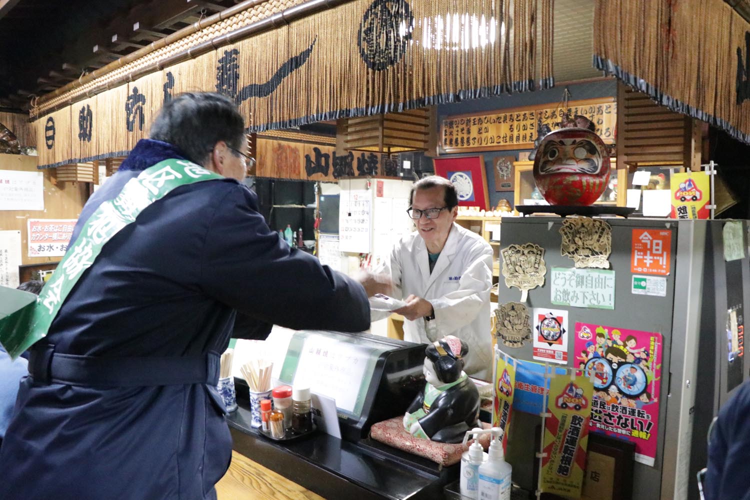 この活動は、犯罪事件などを未然に防ぎ、地域の住民が明るく穏やかに新年を迎えることができるよう、防犯意識を高めるために行われているもので、浦河警察署をはじめ、青少年補導委員会や浦河町PTA連合会など各関係機関が集まり、町内の飲食店を訪問しました。