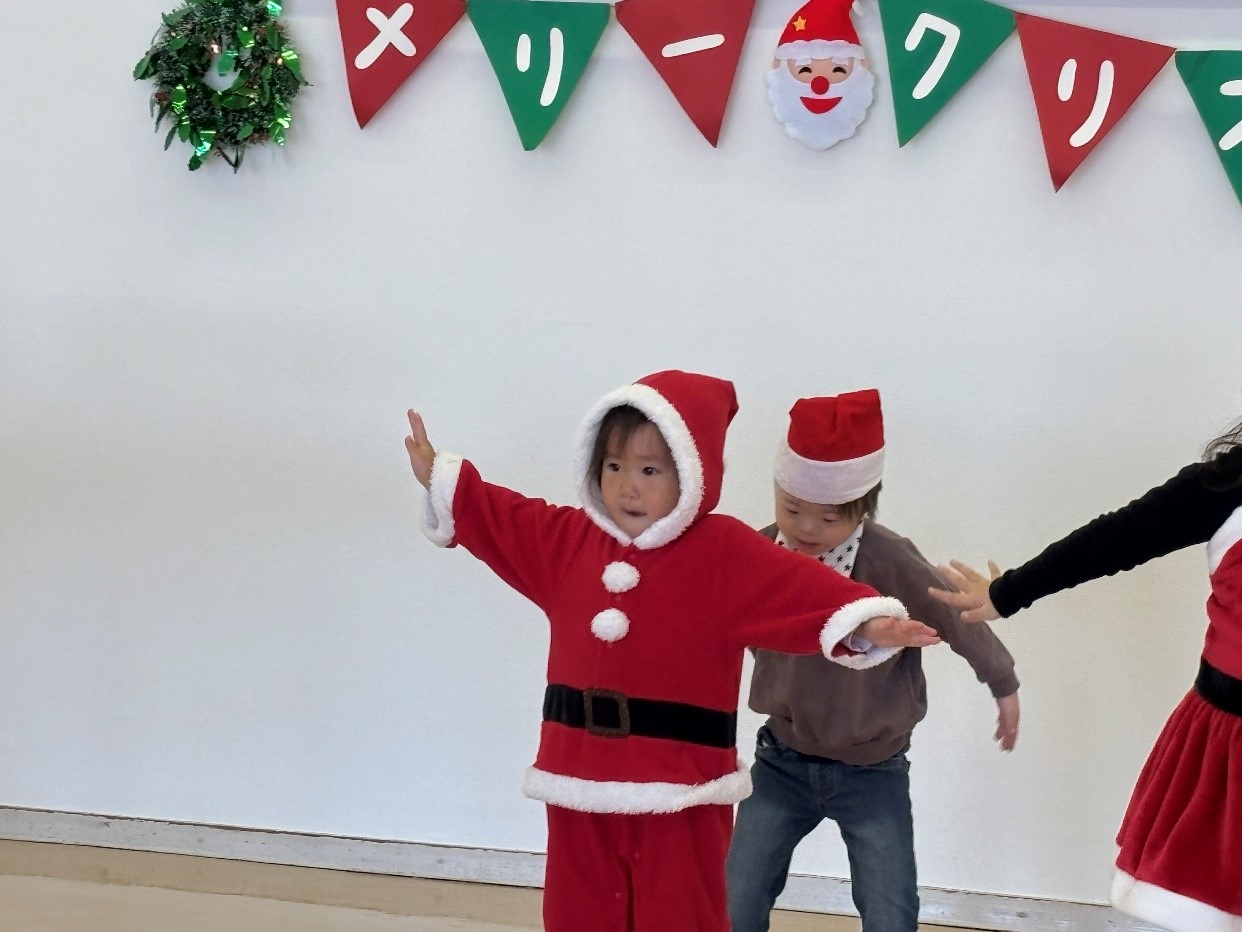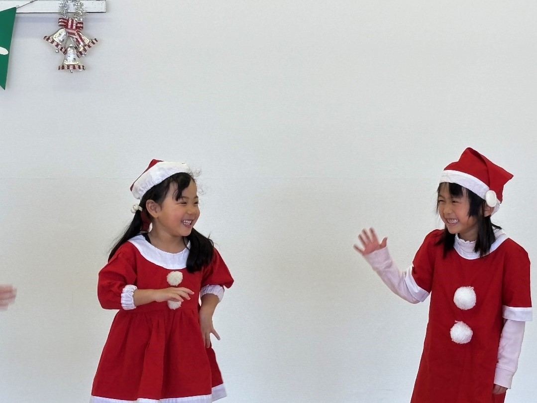 その後はひまわり組によるジングルベルのピアニカ演奏や合唱。全園児があわてんぼうサンタクロースを踊り、盛り上がりました。