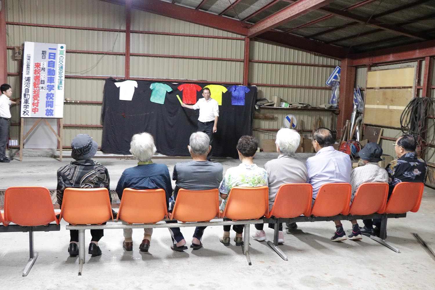 8月28日、浦河町交通安全推進協議会が主催する「高齢者の交通安全教室」が浦河自動車学校で開かれ、浦河町老人クラブ堺町福寿会の会員8人が参加し、交通安全への理解を深めました。