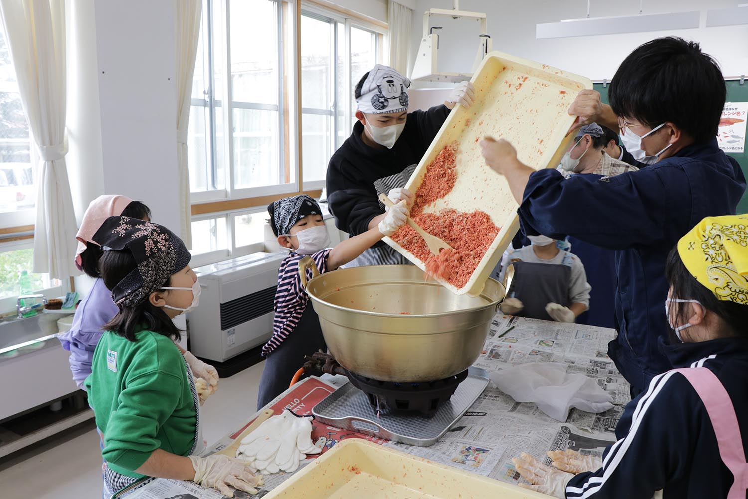 11月21日、浦河町栽培漁業研究会が主催する「サケフレークづくり体験」が荻伏小学校で行われ、2・3年生15人が参加しました。