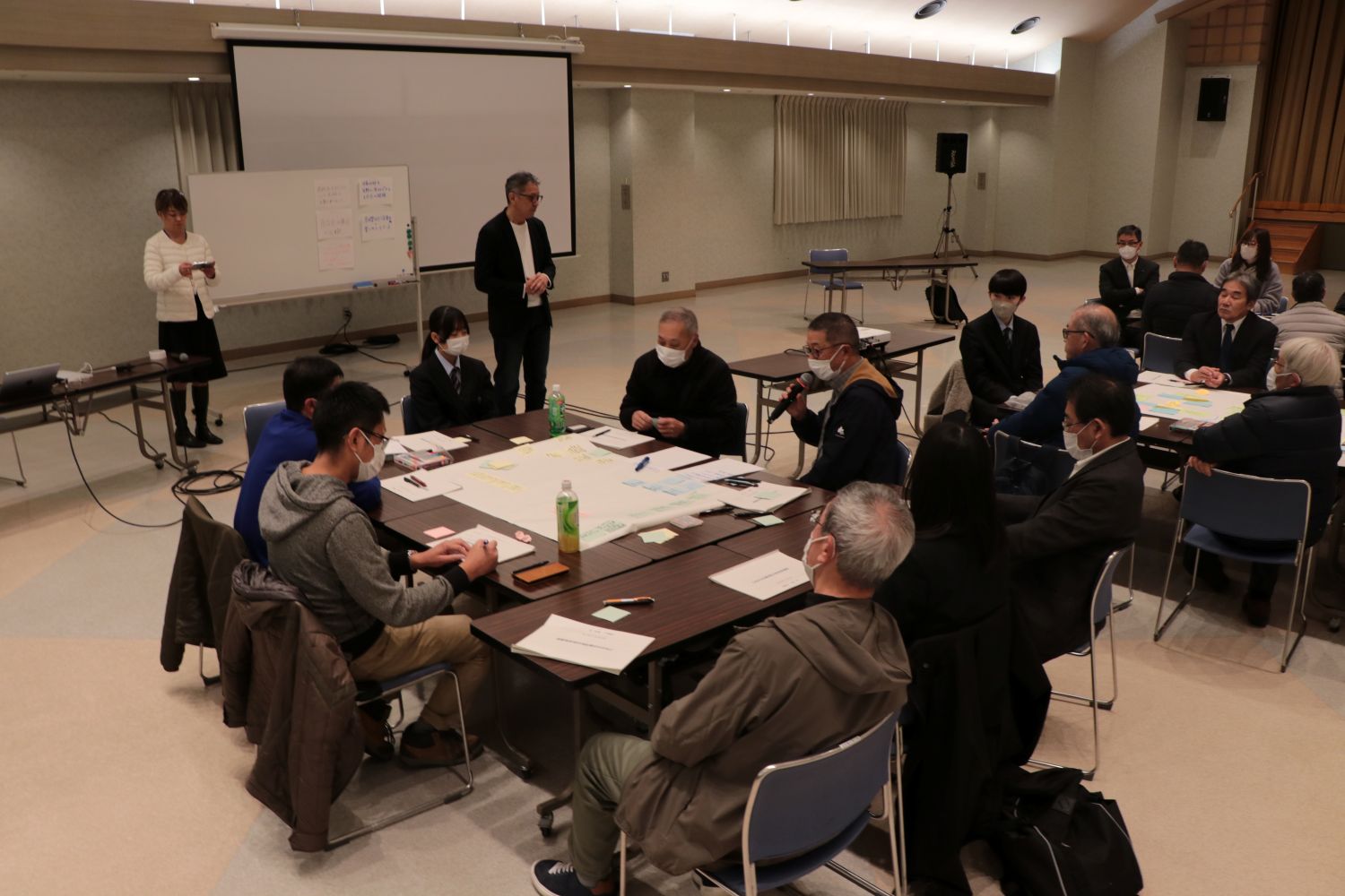 12月7日、自治会連絡協議会(菅真一会長)が主催する研修会が総合文化会館で開かれ約30人が参加しました。 この研修会は、自治会員の高齢化や役員の担い手不足問題など自治会共通の悩みや対応方法などを共有し、活性化を促すことを目的に開催されました。 株式会社KITABA の酒本宏さんを講師に、高校生から大人までが自治会の問題点や改善方法などについて活発に話し合いました。