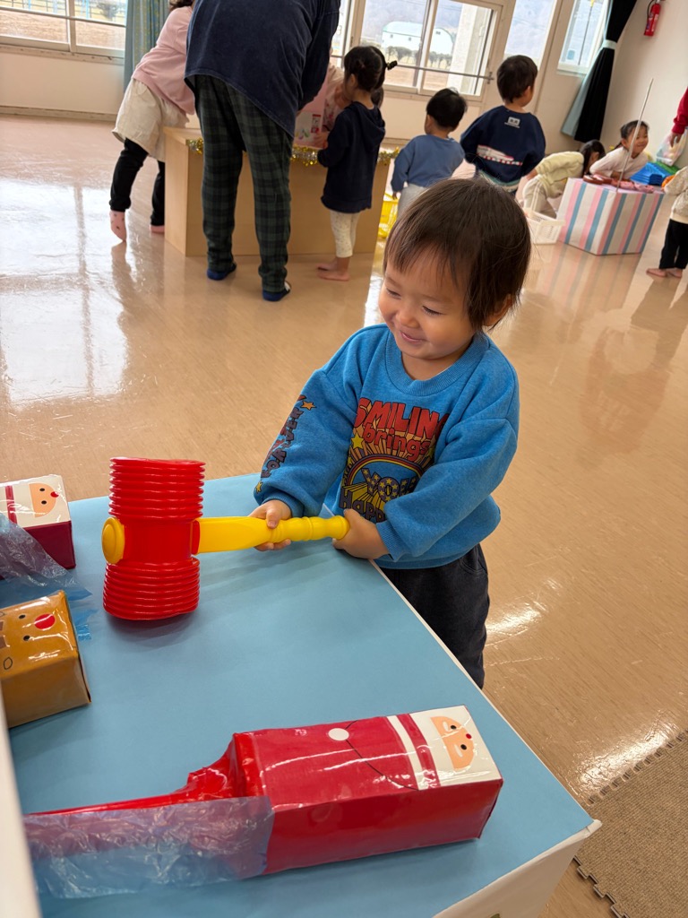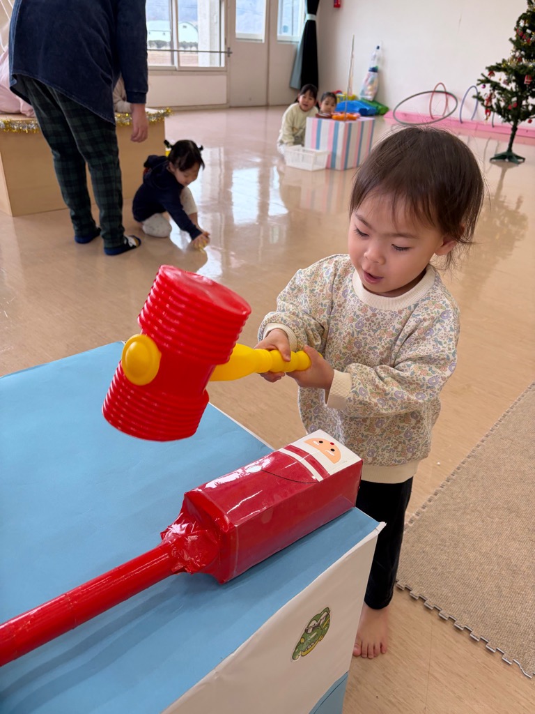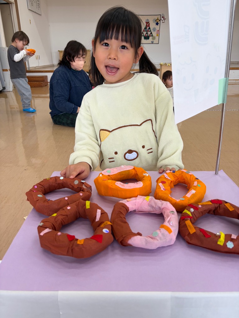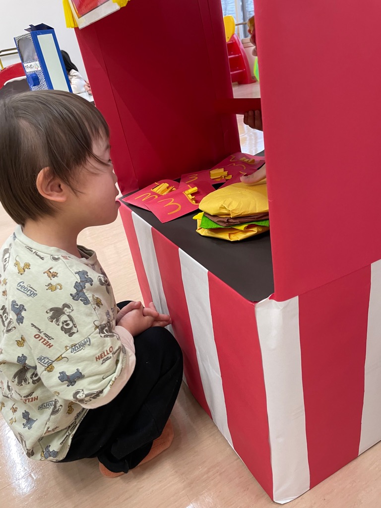 今回のテーマは【某商業施設♪】。子どもたちは大好きなハンバーガーやドーナツのお店でお買い物を楽しんだほか、ゲームセンターをイメージしたガチャガチャやワニワニパニックのコーナーでも元気いっぱいに遊びました。会場は、終始子どもたちの笑顔と歓声に包まれていました。
