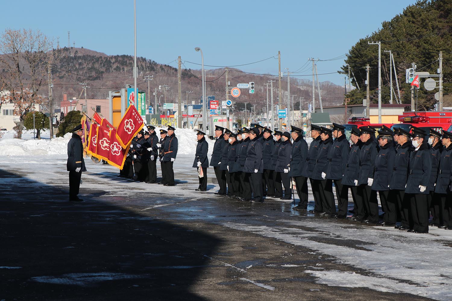 新年恒例の「令和8年浦河町出初式」が1月6日に浦河消防署前で行われ、消防職員や団員など約100人が参加しました。