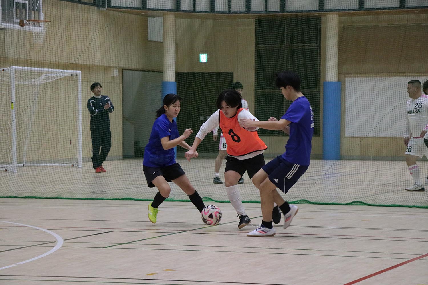 12月21日、ゼロネクストワンアリーナで、浦河サッカー協会(木田尚孝会長)が主催する「ゼロネクストワンアリーナオープン記念令和7年度浦河町民フットサル大会」が開かれ、中学生から一般の方まで9チーム約100人が参加し、会場は終始、白熱した雰囲気に包まれました。