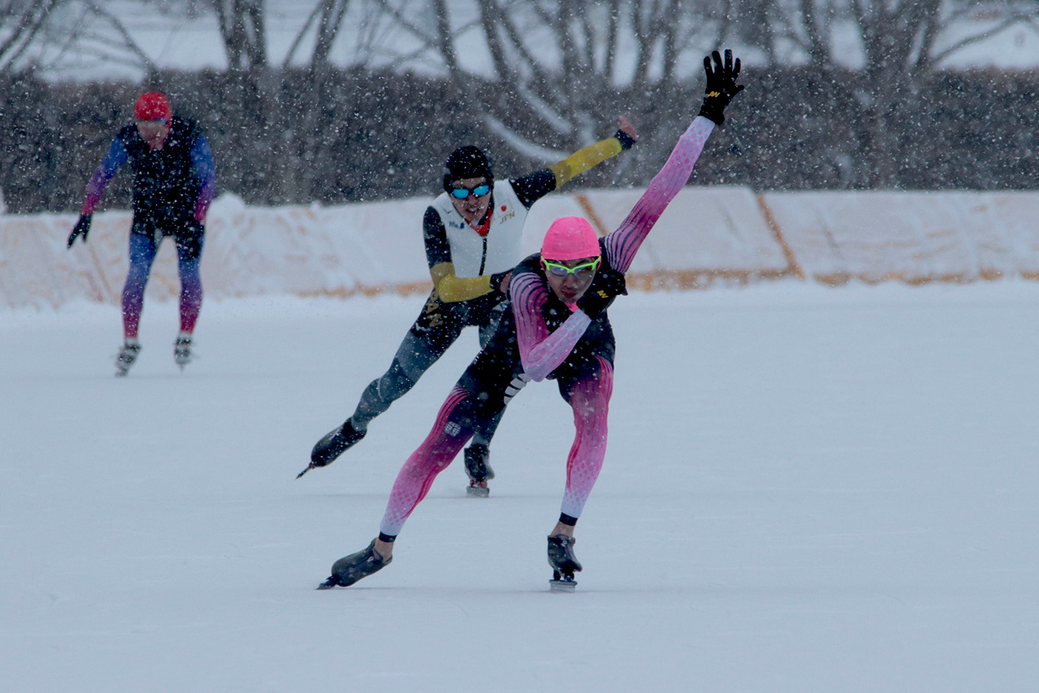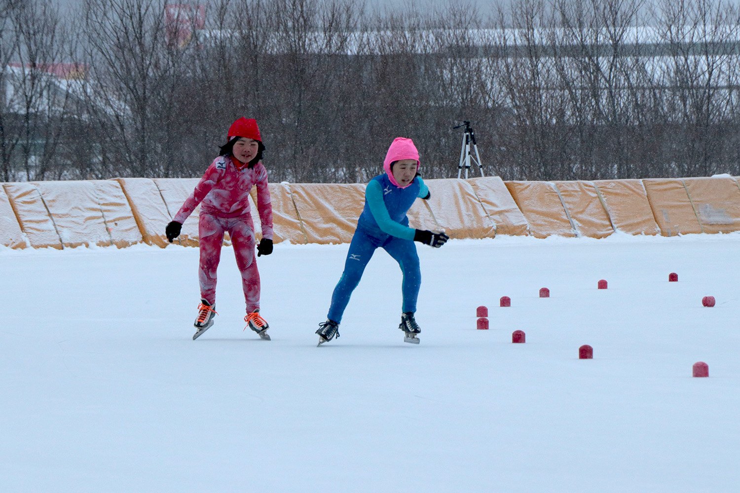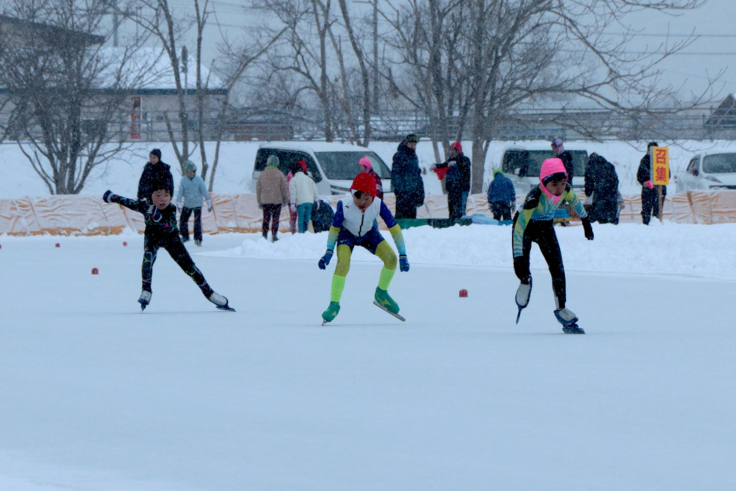 当日は雪が降る中での開催となり、開会式では大会長の松田町長が「記録や自己ベストを目指して頑張ることはもちろん、スケートを楽しみながら滑ってほしい」と激励の言葉を送りました。