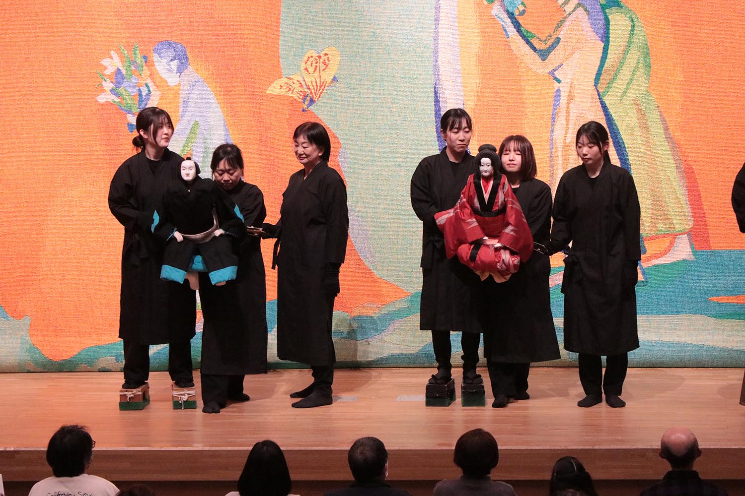 2月1日、総合文化会館で「さっぽろ人形浄瑠璃あしり座」の公演が開かれ、約220人が来場しました。 人形浄瑠璃は日本の三大舞台芸術の一つで、太夫の語り・三味線・人形遣いが一体となって行う芸能です。 スタートの演目は「二人三番叟」で、2体の人形が力強く踊り、五穀豊穣や来場者の幸福を祈るもの。その後も2つの演目を披露し、巧みな人形さばきに会場からは大きな拍手が送られました。