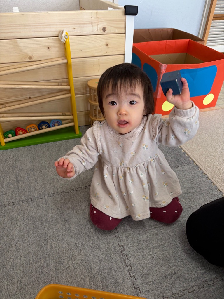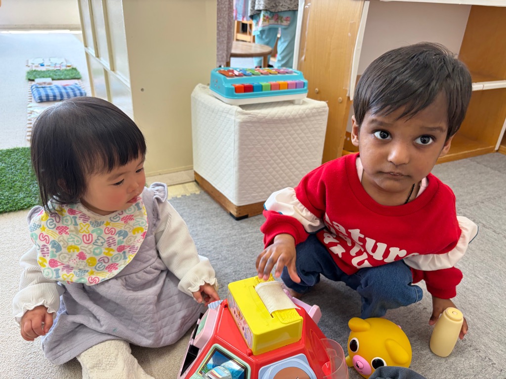 つくし組のお友達と一緒に保育室で好きな遊びを見つけ、友達とのやり取りを楽しみながら、笑顔あふれる時間を過ごしました。