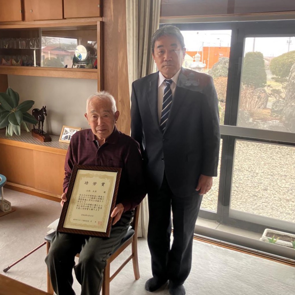 4月6日、浦河町スポーツ協会(菅真一会長)よりスポーツ功労賞の授与が行われ、山内正美さん(浦河ゲートボール協会)と東利夫さん(浦河パークゴルフ協会)に賞状が手渡されました。