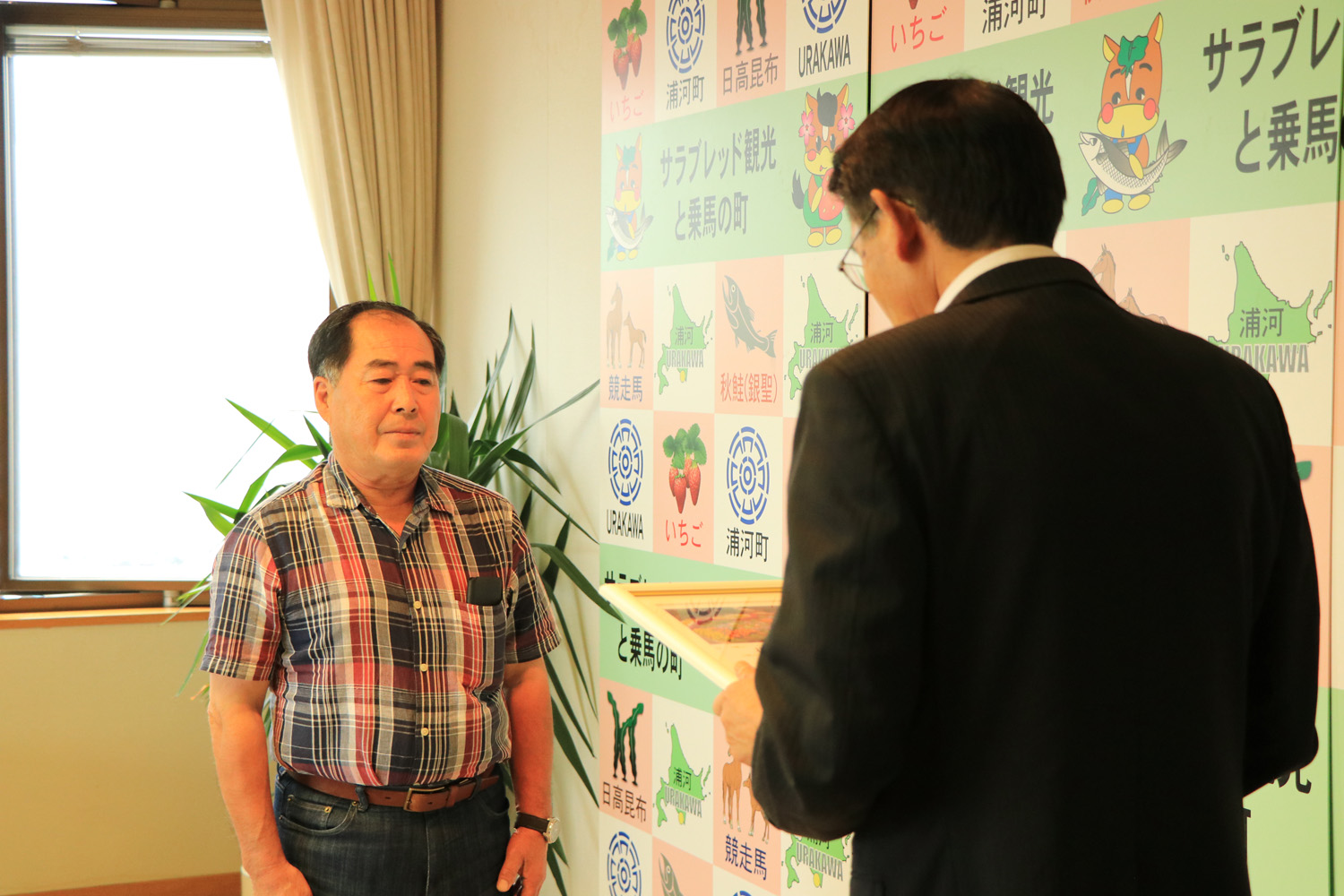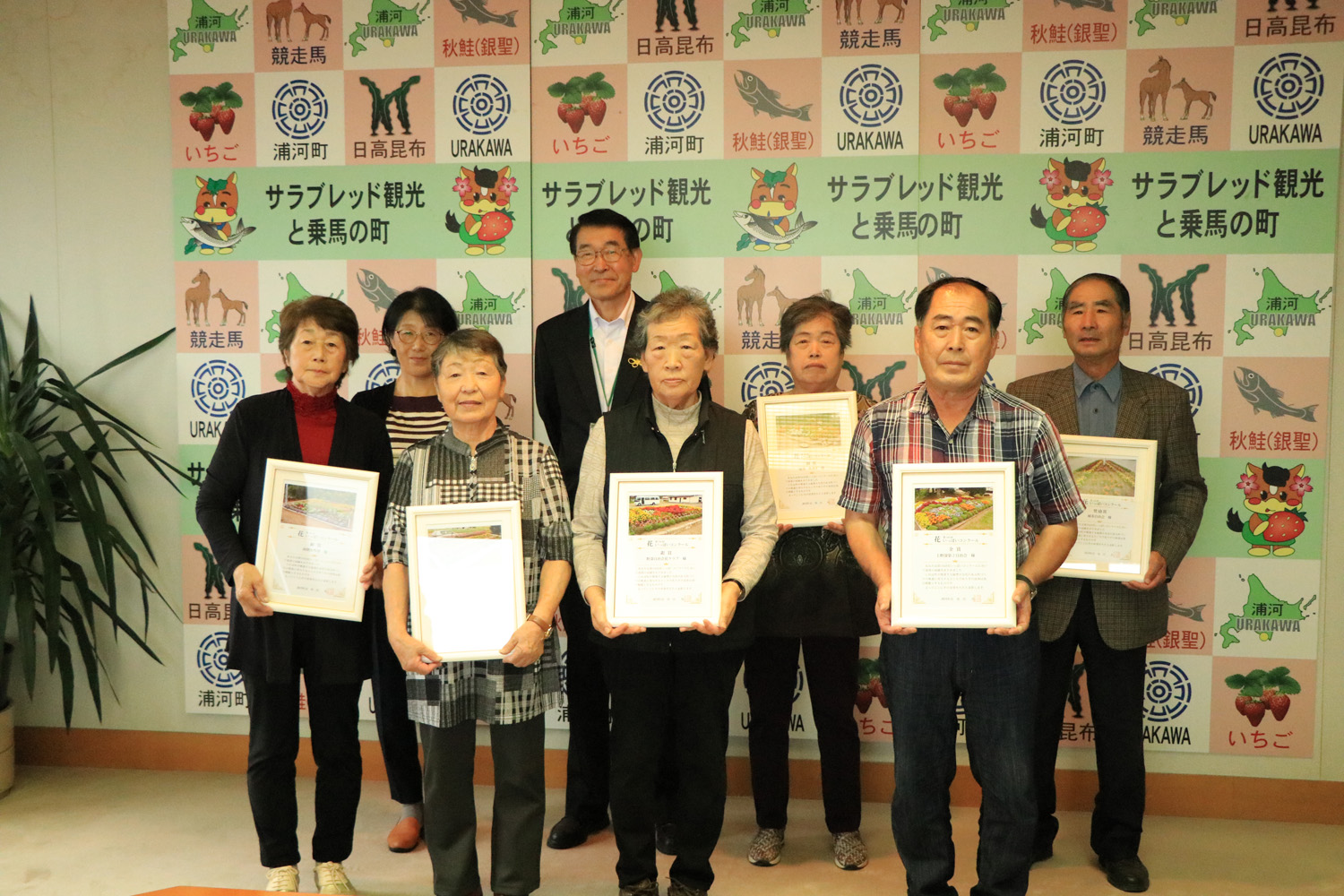 9月28日(木曜日)に第34回「花いっぱい」コンクールの表彰式が行われ、今年は上野深第2自治会(佐藤広之会長)が見事金賞を受賞し、町長より賞状が手渡されました。