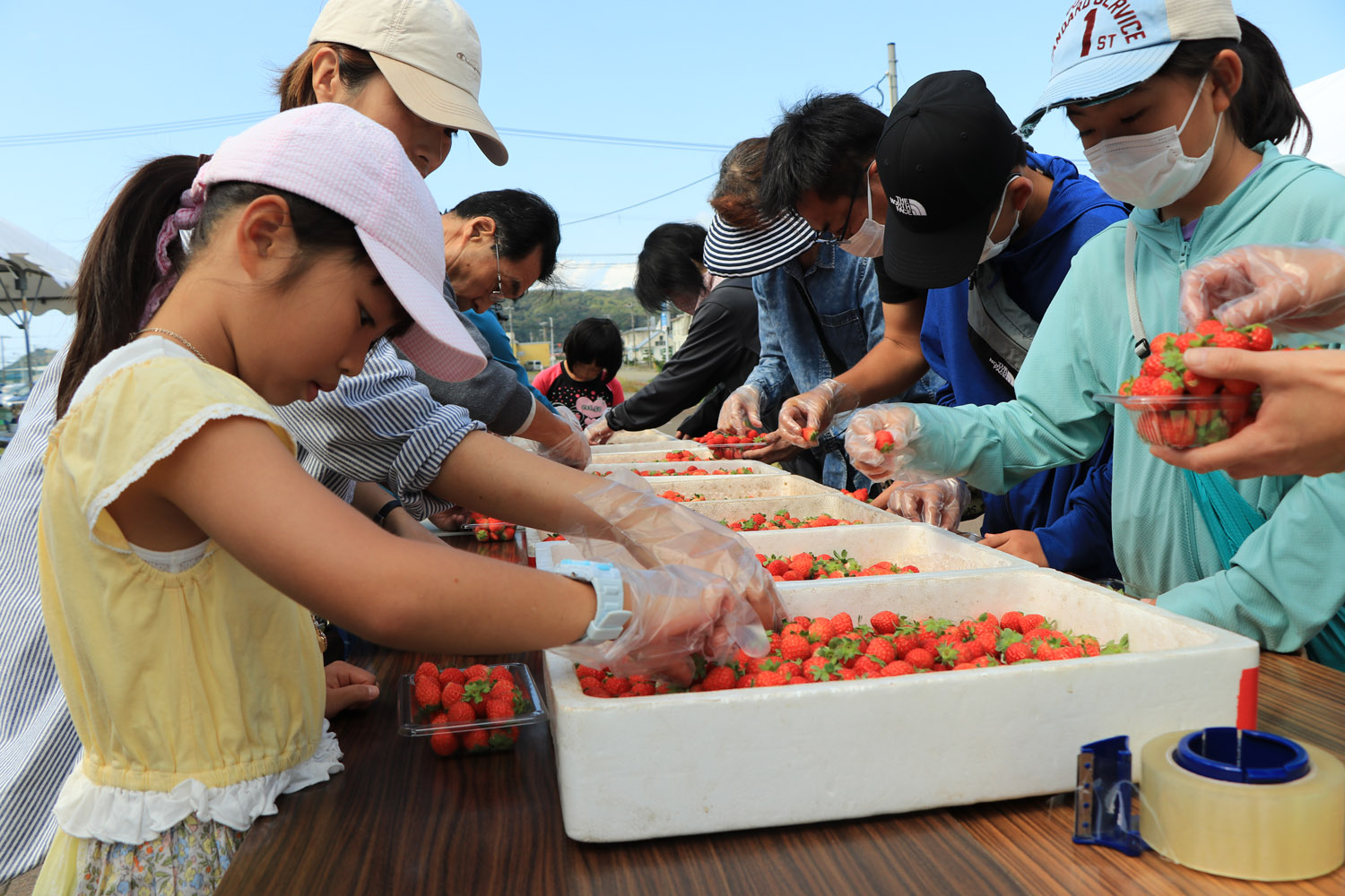 開会式では、ヤマハ音楽教室講師の方のエレクトーン演奏で始まり、産業まつりならではの「玉葱、人参、じゃがいもの」の詰め放題や「いちごパック詰め放題」などで会場は大賑わいでした。