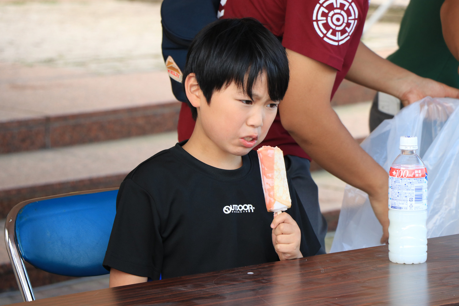 いちごアイス早食い競争で勝利した前谷まひろさんは「美味しかったけど冷たかった」と口周りにアイスを付けながら話していました。
