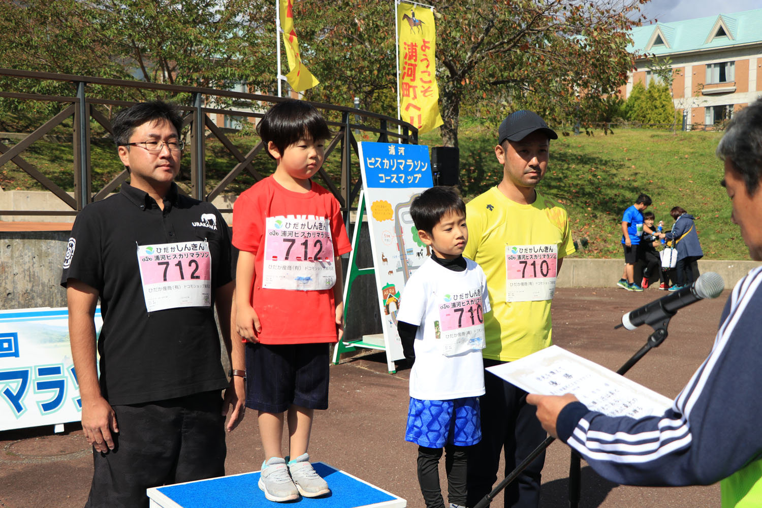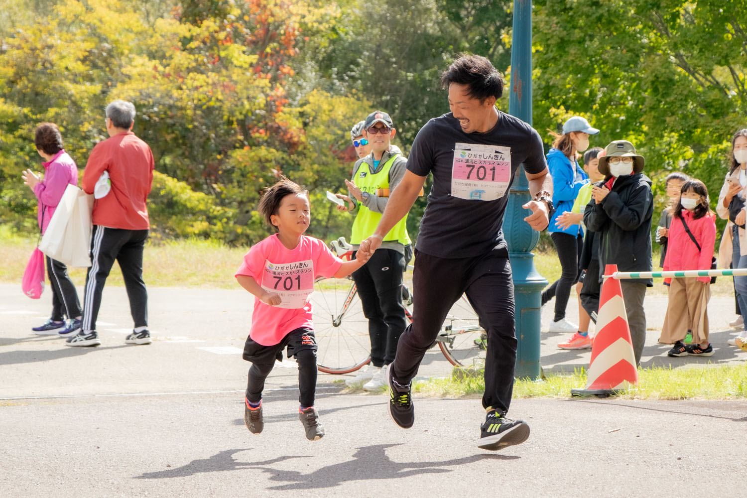 4歳以上の幼児と保護者のペアで走るアエルコース(1km)の部で優勝した大山想生さん(5歳)は「大会の前にお父さんと一緒に走る練習をした。優勝できて良かった」と照れ臭そうに話していました。